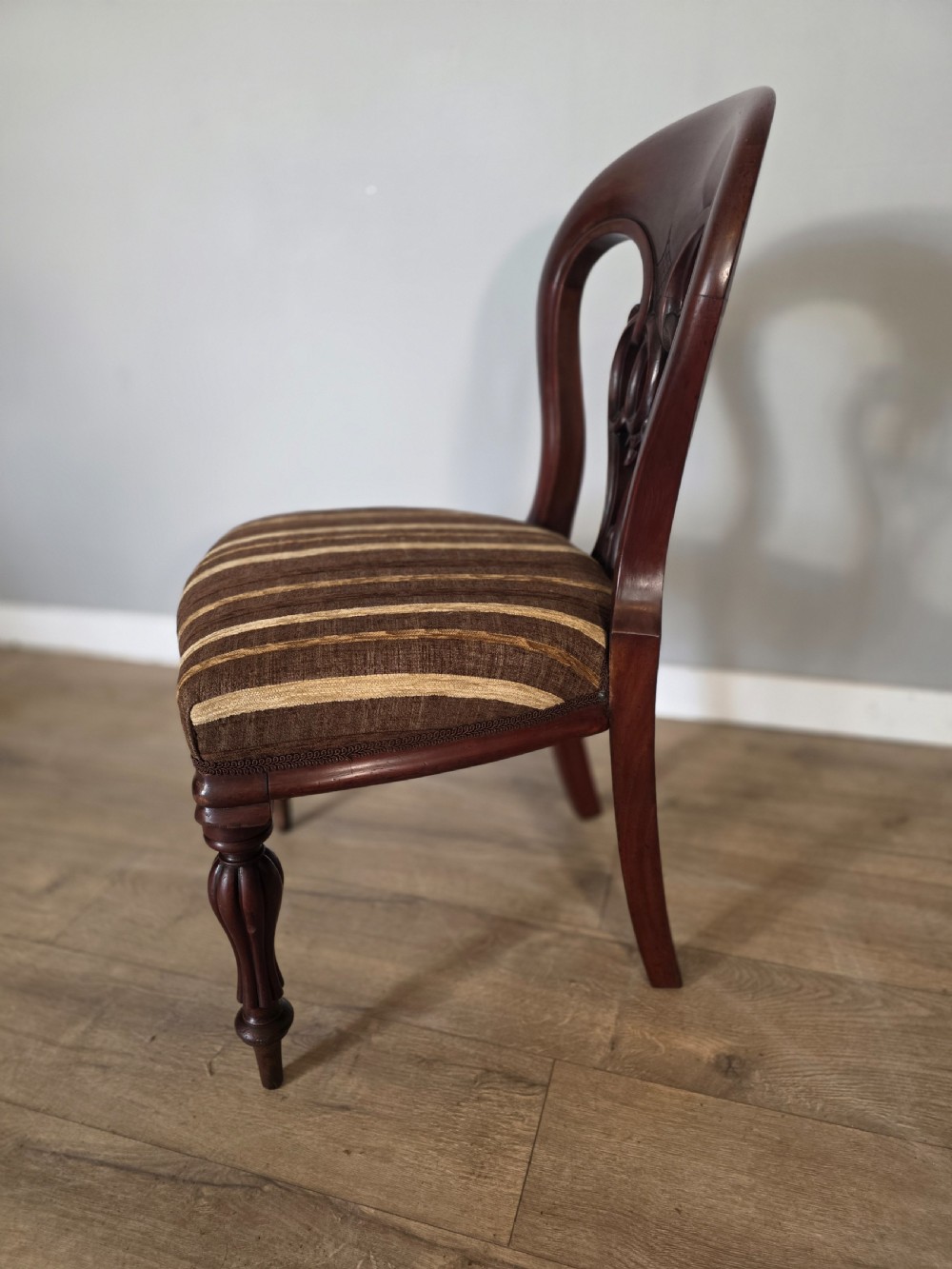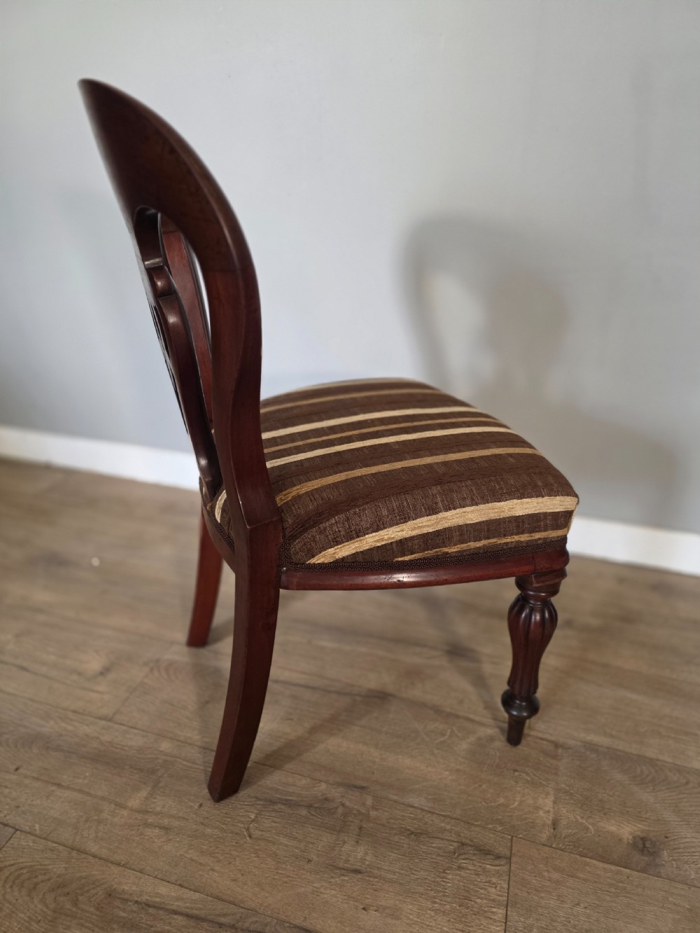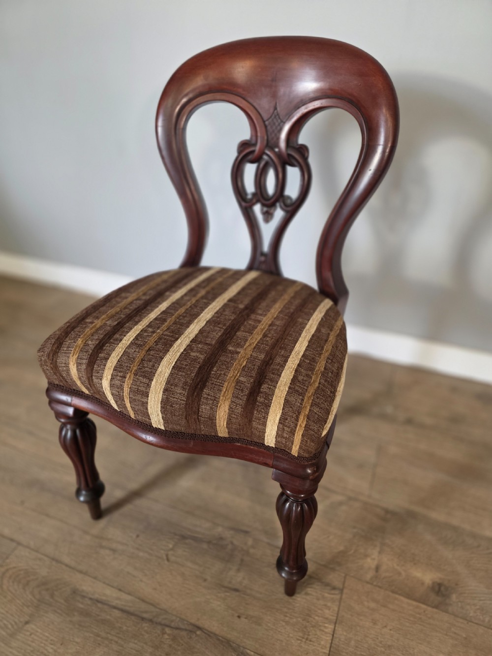 These chairs exude elegance and sophistication, perfect for adding a touch of old world charm to any room. Each chair is crafted with attention to detail featuring a rich brown colour and a victorian style design. These chairs are stylish and comfortable making them a timeless addition to any home. The chairs are solid snd sturdy. They are heavy and of great quality.