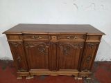 This piece of furniture exudes elegance and charm. With intricate detailing and a rich walnut finish, this piece of furniture is a timeless addition to any home. There is ample of storage space while maintaining a sophistication and traditional aesthetic. Perfect for those who appreciate classic French design and craftsmanship.