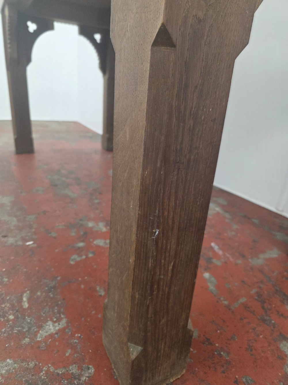 A stunning piece of furniture that exudes historical charm and elegance. It offers ample space for displaying decorative items or for use as a functional table. The gothic design adds a touch of sophistication to any room, making it versatile and stylish addition to your home.
