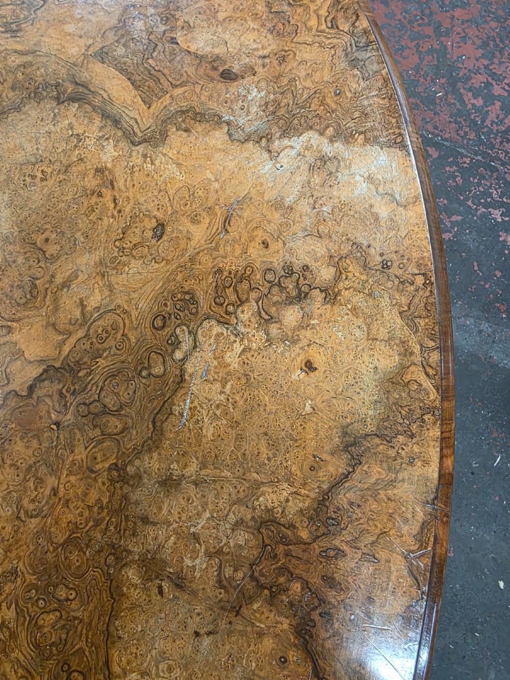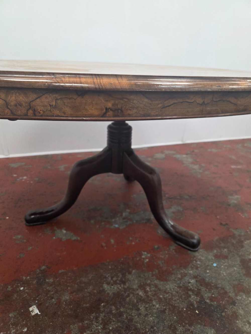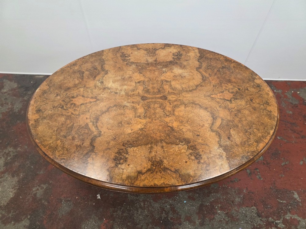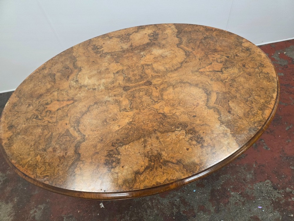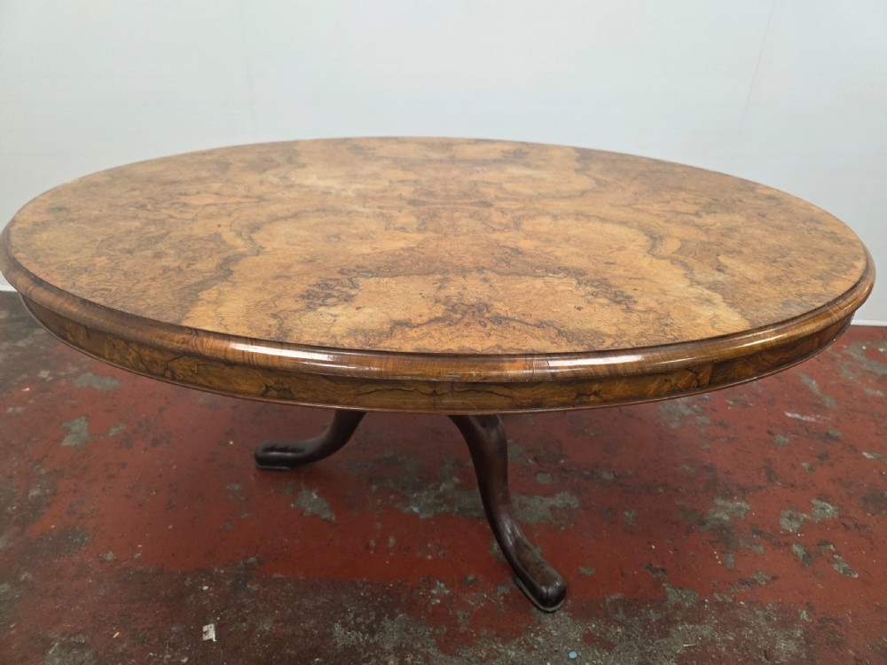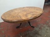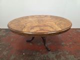 Victorian Burr Walnut Topped Coffee Table in a Modern Cast Iron Tripod Base