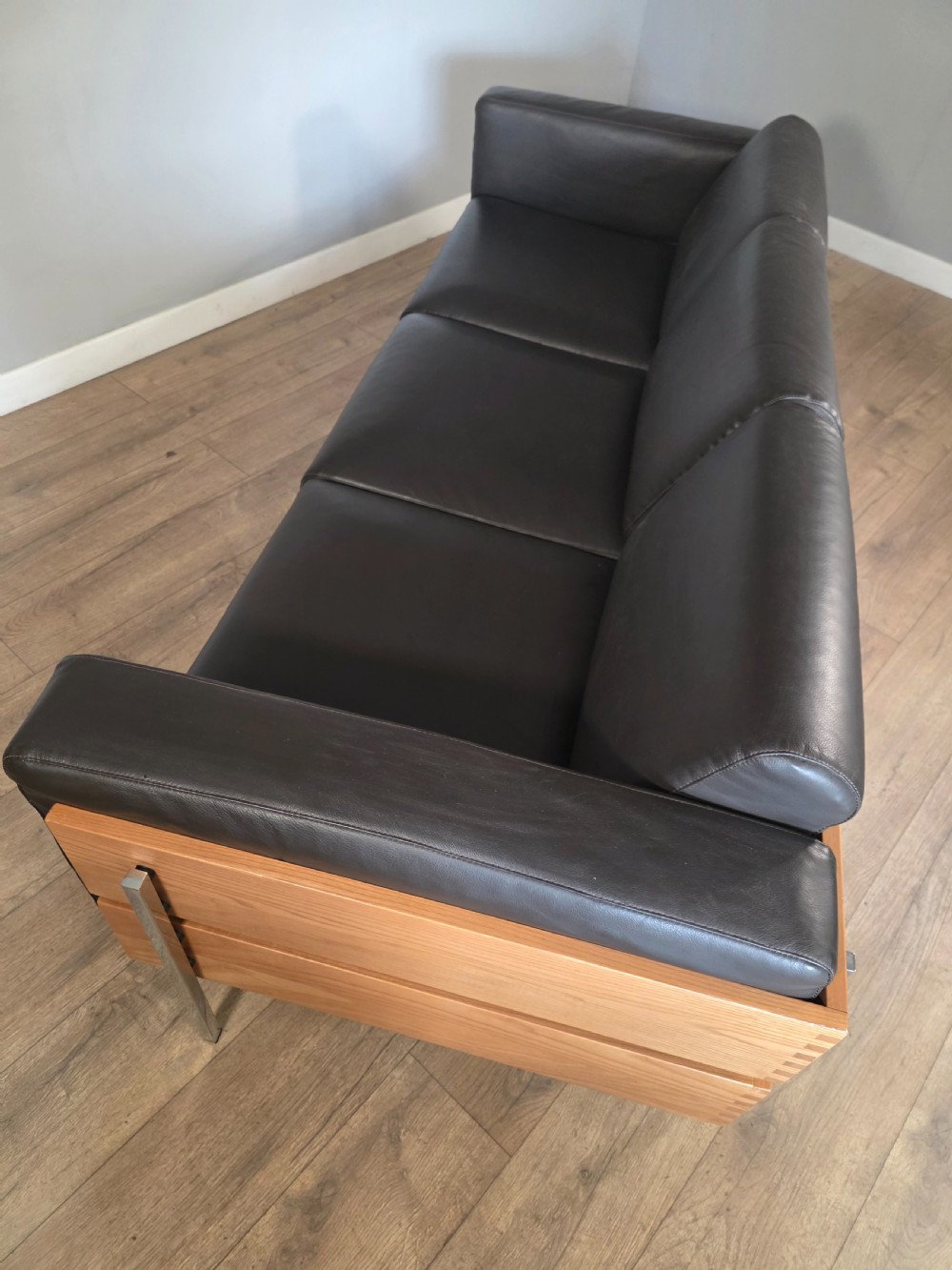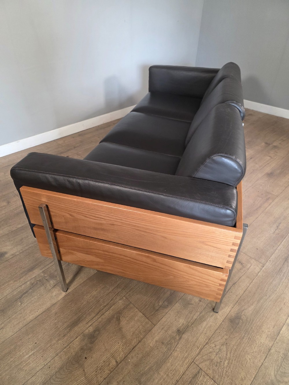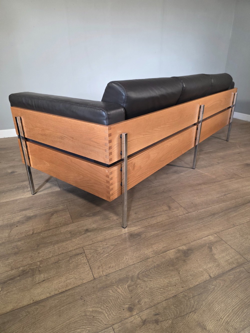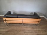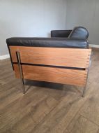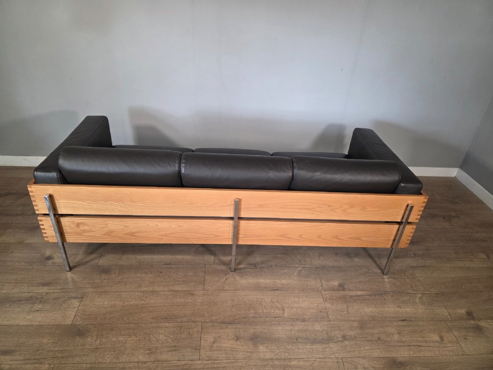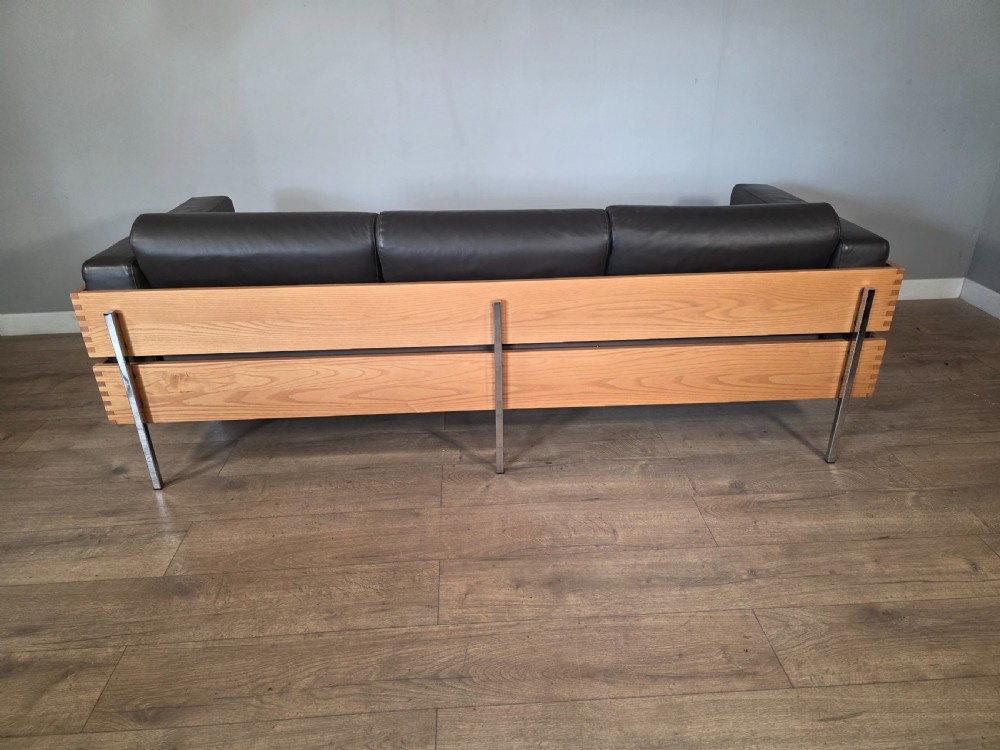 Robin Day Habitat Forum 3 seater dark brown leather sofa with beach wood frame