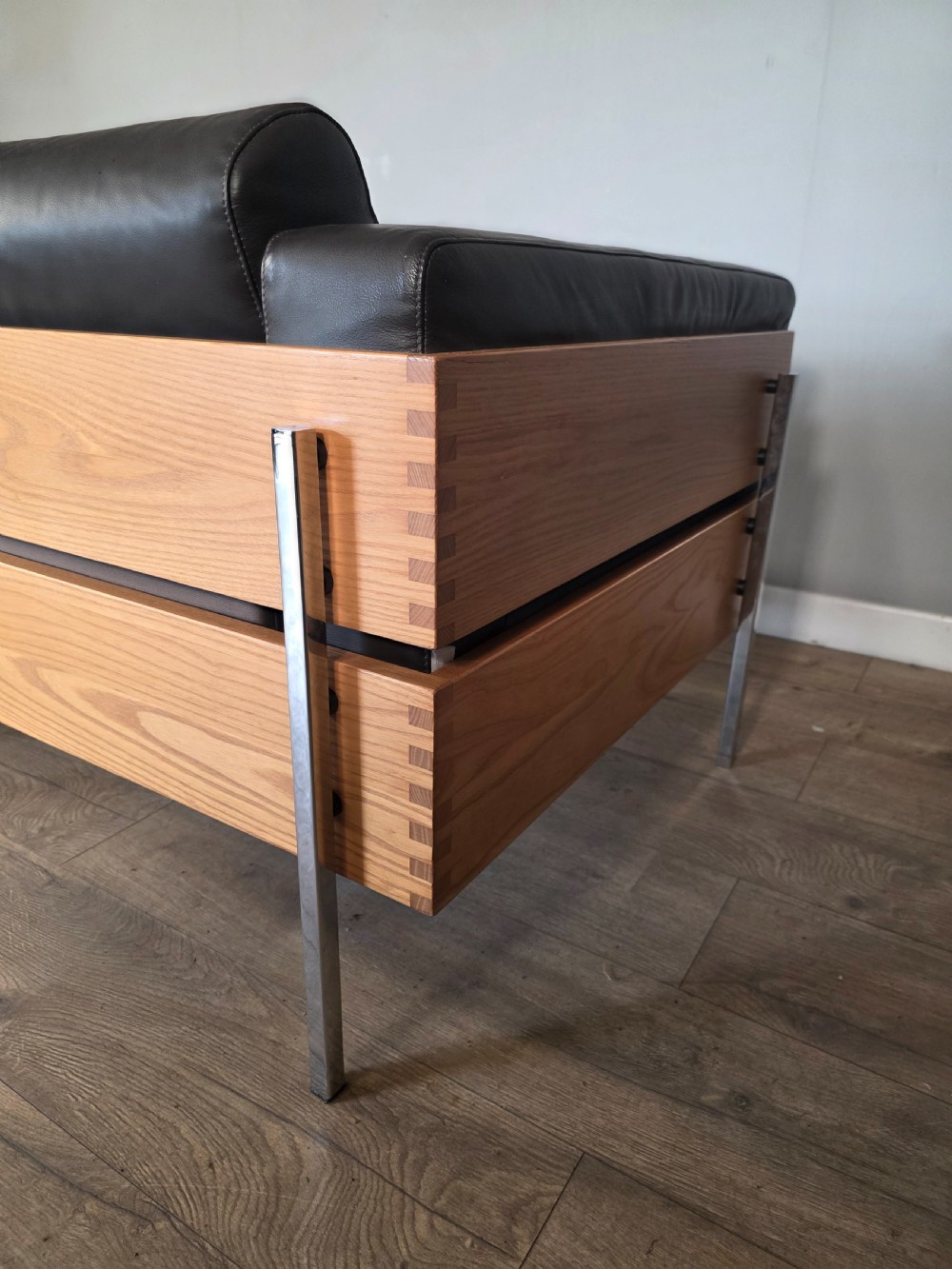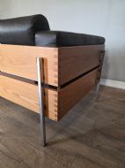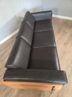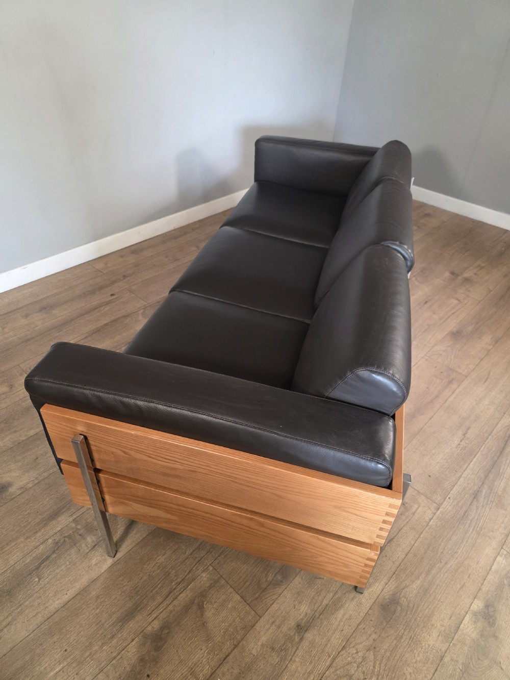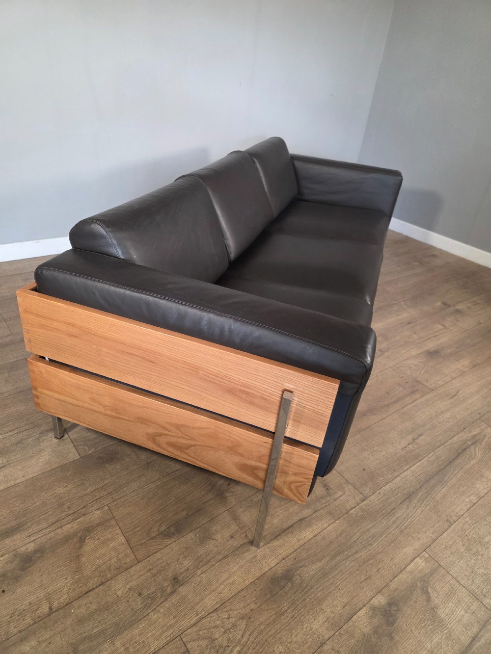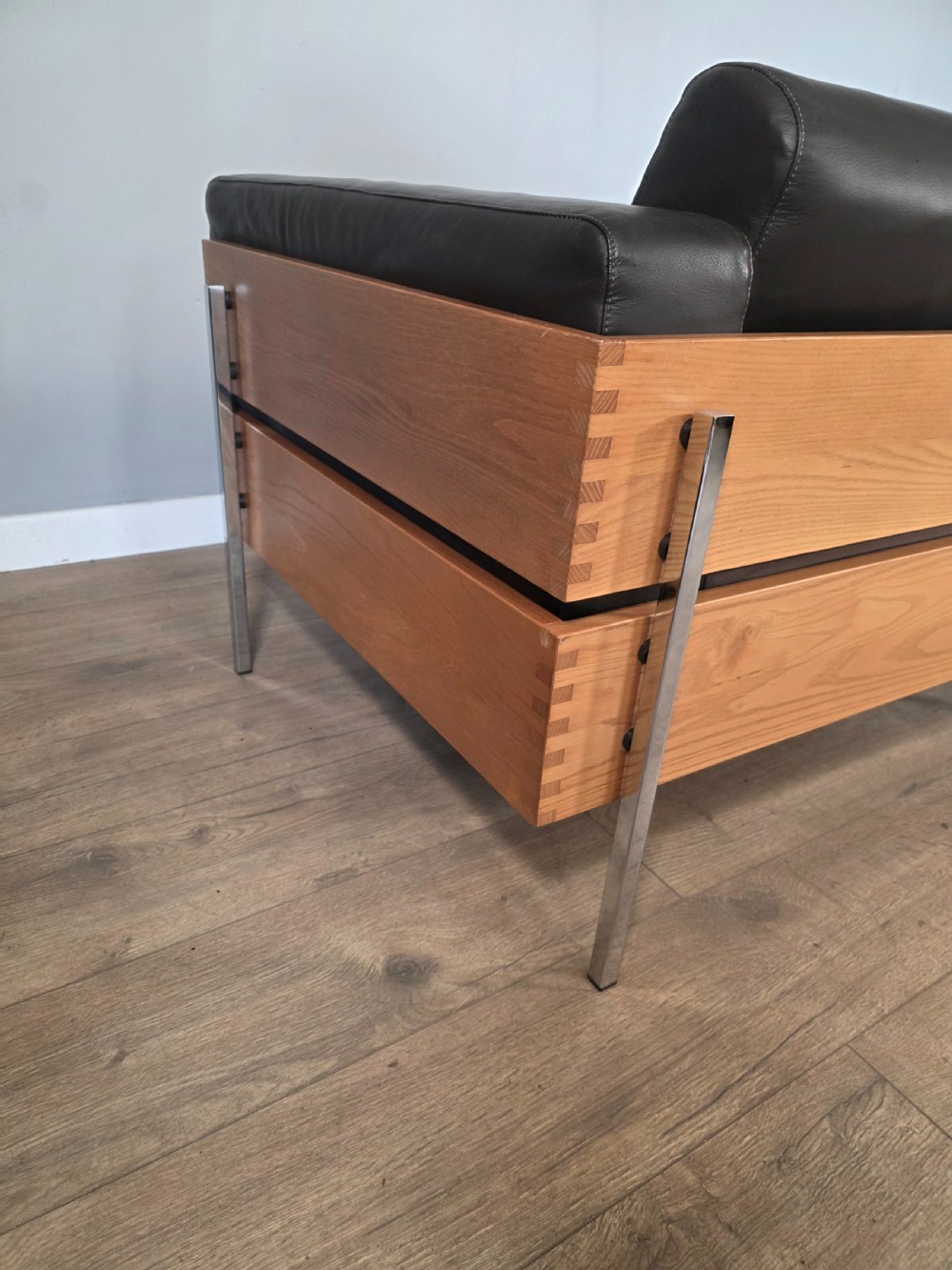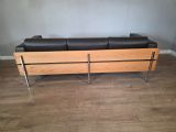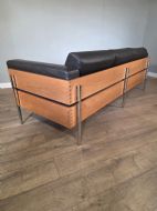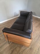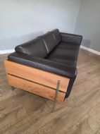 Robin Day Habitat Forum 3 seater dark brown leather sofa with beach wood frame