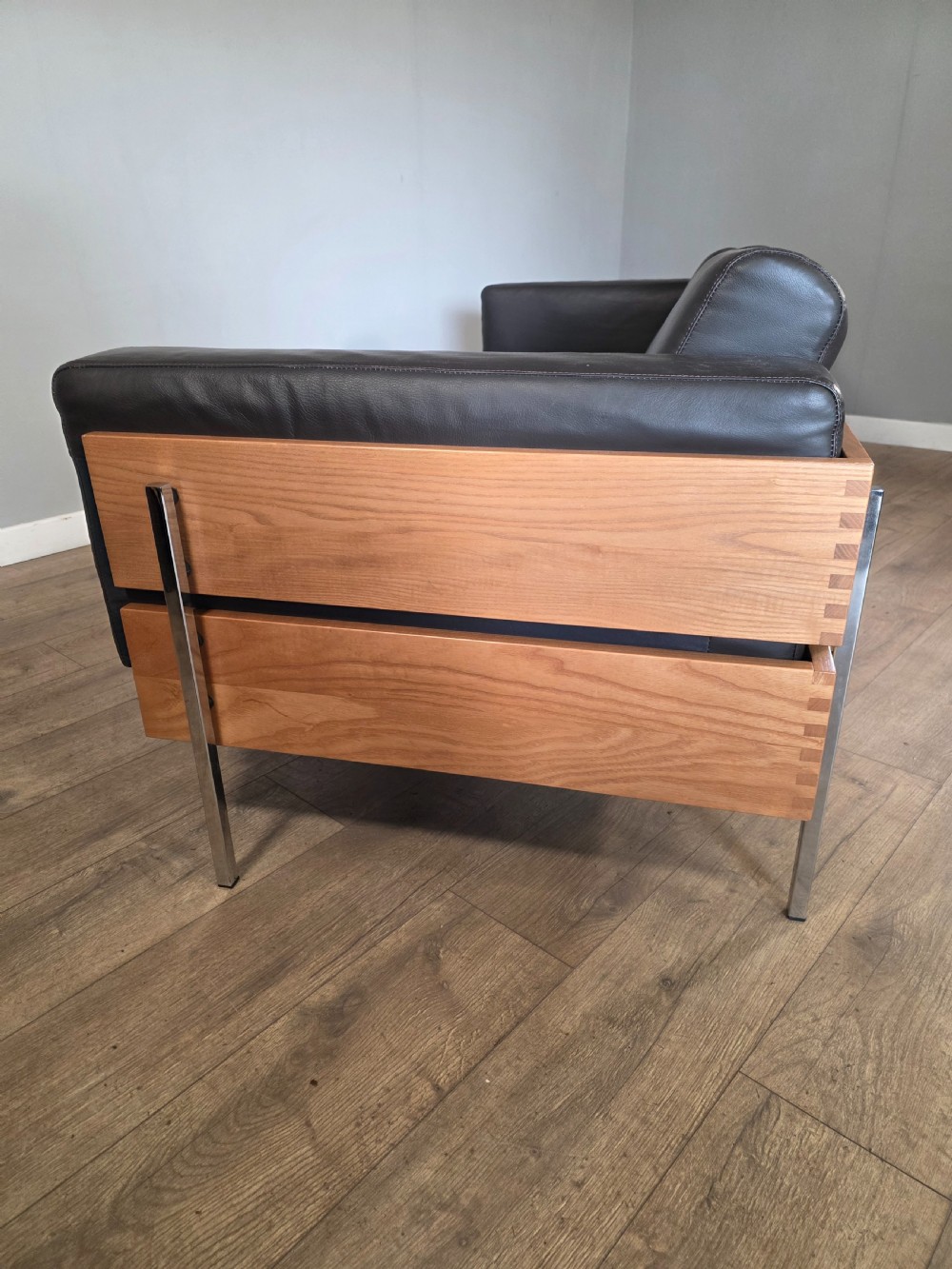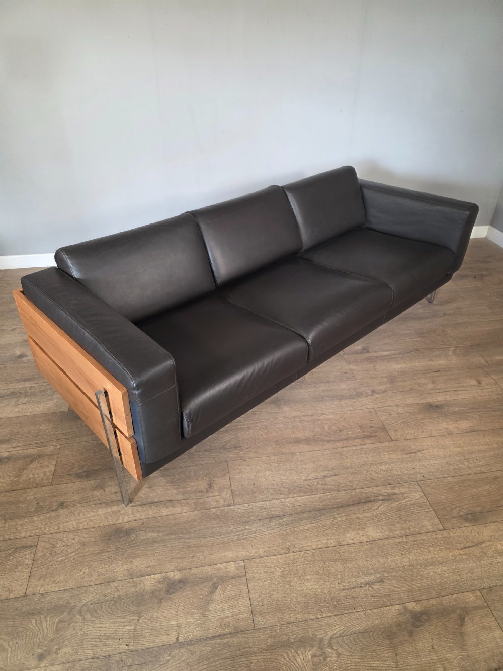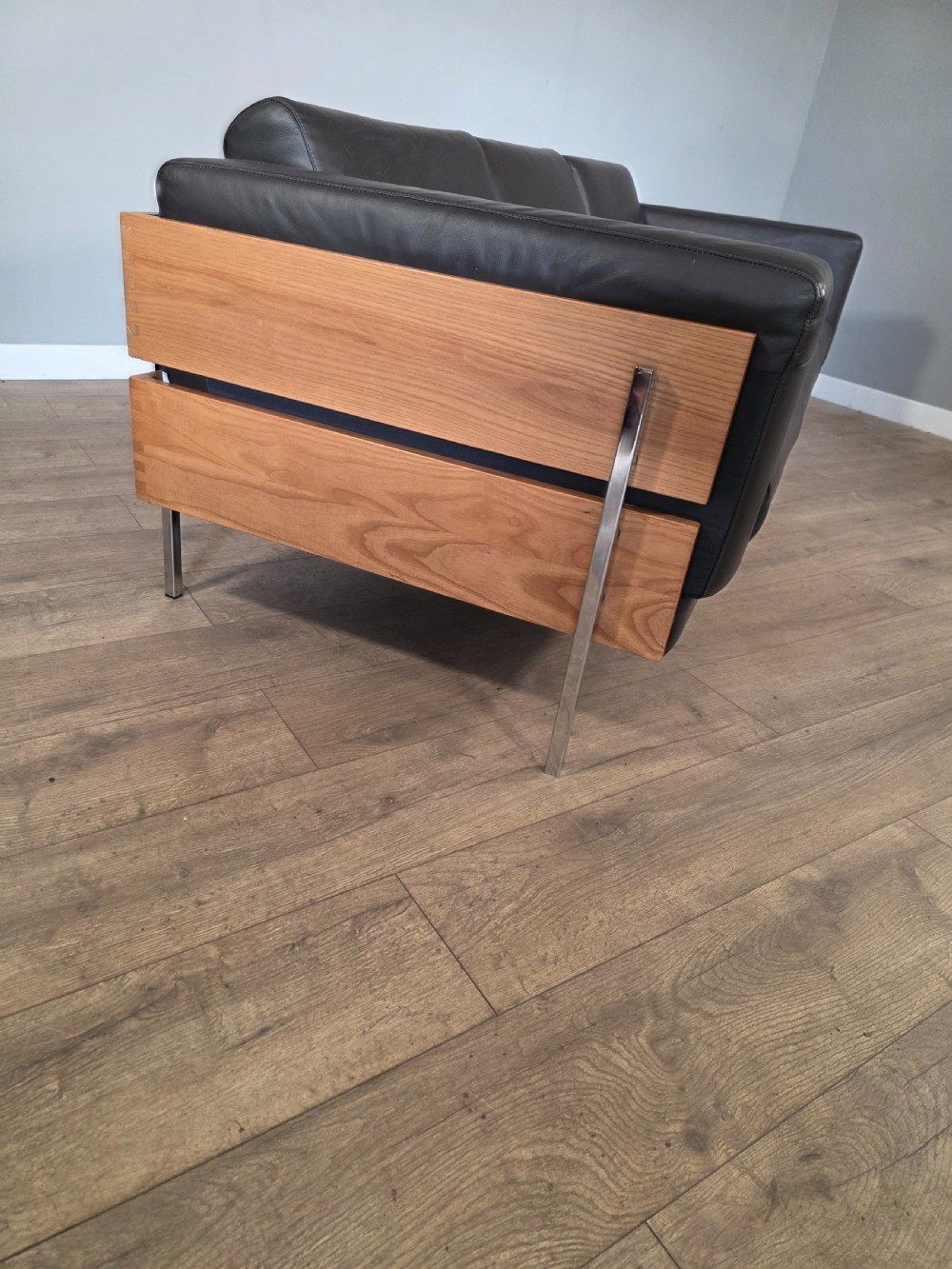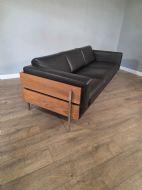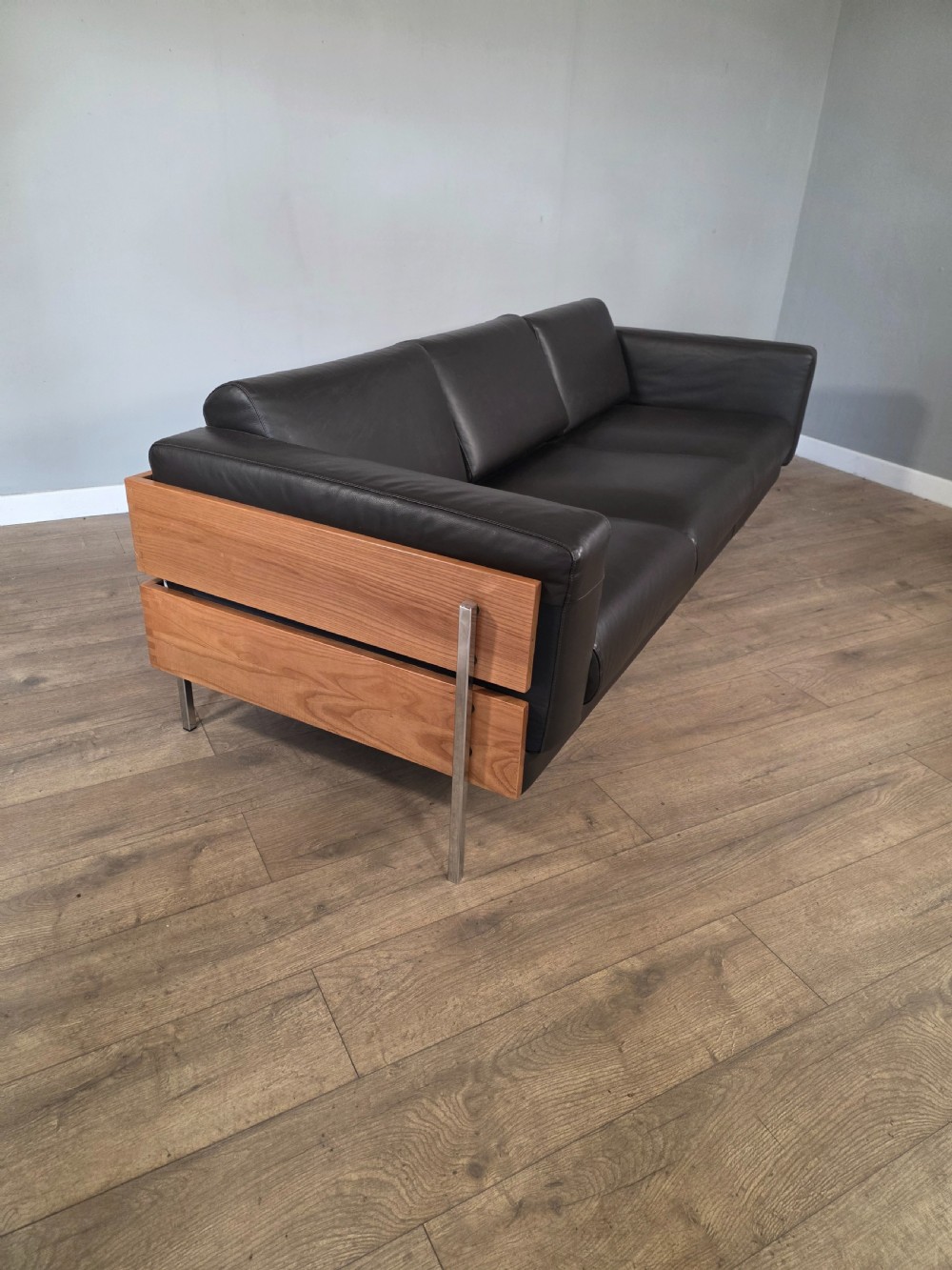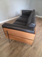 Robin Day Habitat Forum 3 seater dark brown leather sofa with beach wood frame