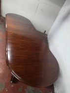 This large banquet/extending dining table exudes vintage charm and elegance. With its large scale and extendable design with 5 leaves it offers ample seating for family and friends to enjoy meals. The rich mahogany wood adds a touch of sophistication, while the intricate craftsmanship and historical significance make it a valuable addition to any antique furniture collection. The table can be extended to different lengths with a maximum of 13 feet.
