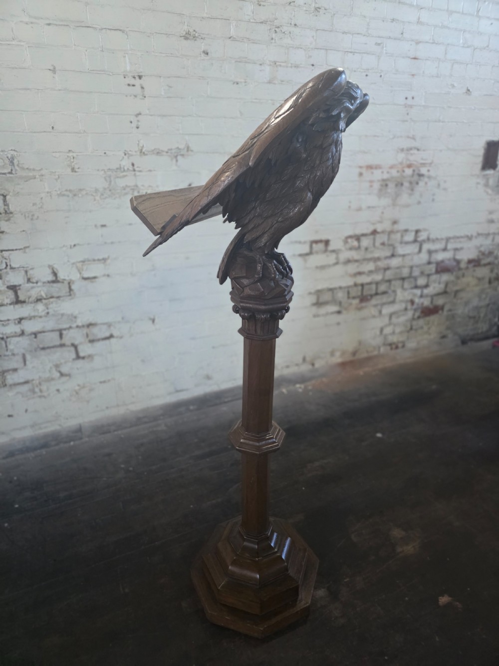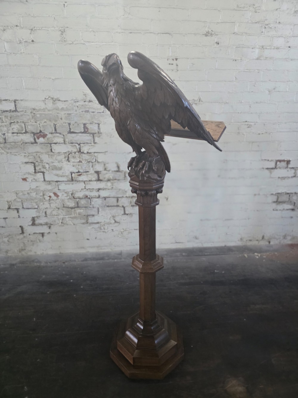 Late Victorian Antique Carved Oak Eagle Lectern