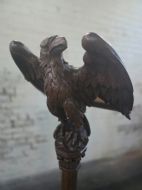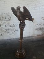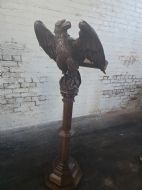 This piece of furniture exudes historical charm and intricate craftsmanship. It is a striking piece of furniture that would make a unique addition to any antique collection. The Eagle design and carved detailing adds a touch of elegance and sophistication to this piece making it a timeless and versatile item for display in a home or office setting.