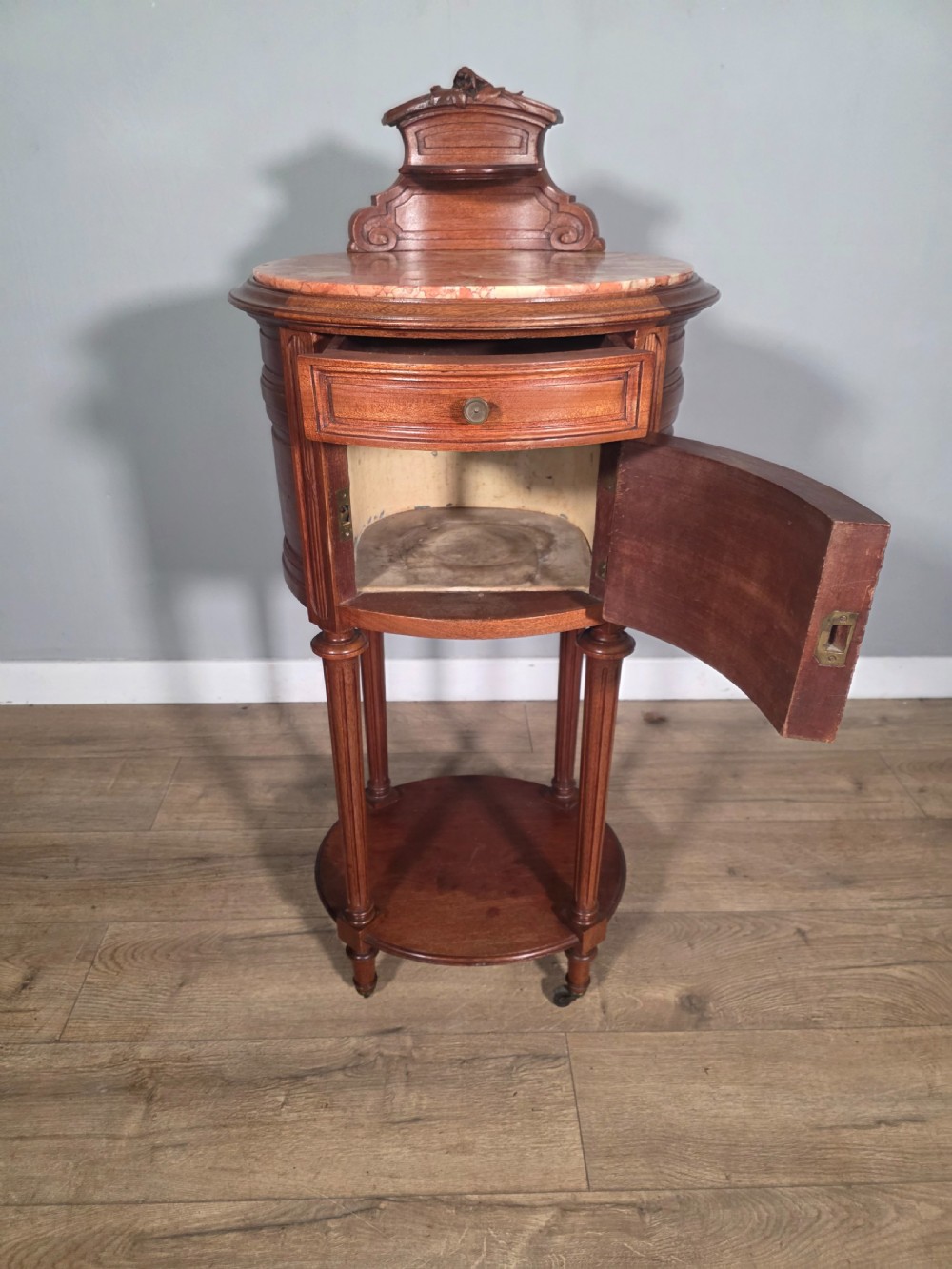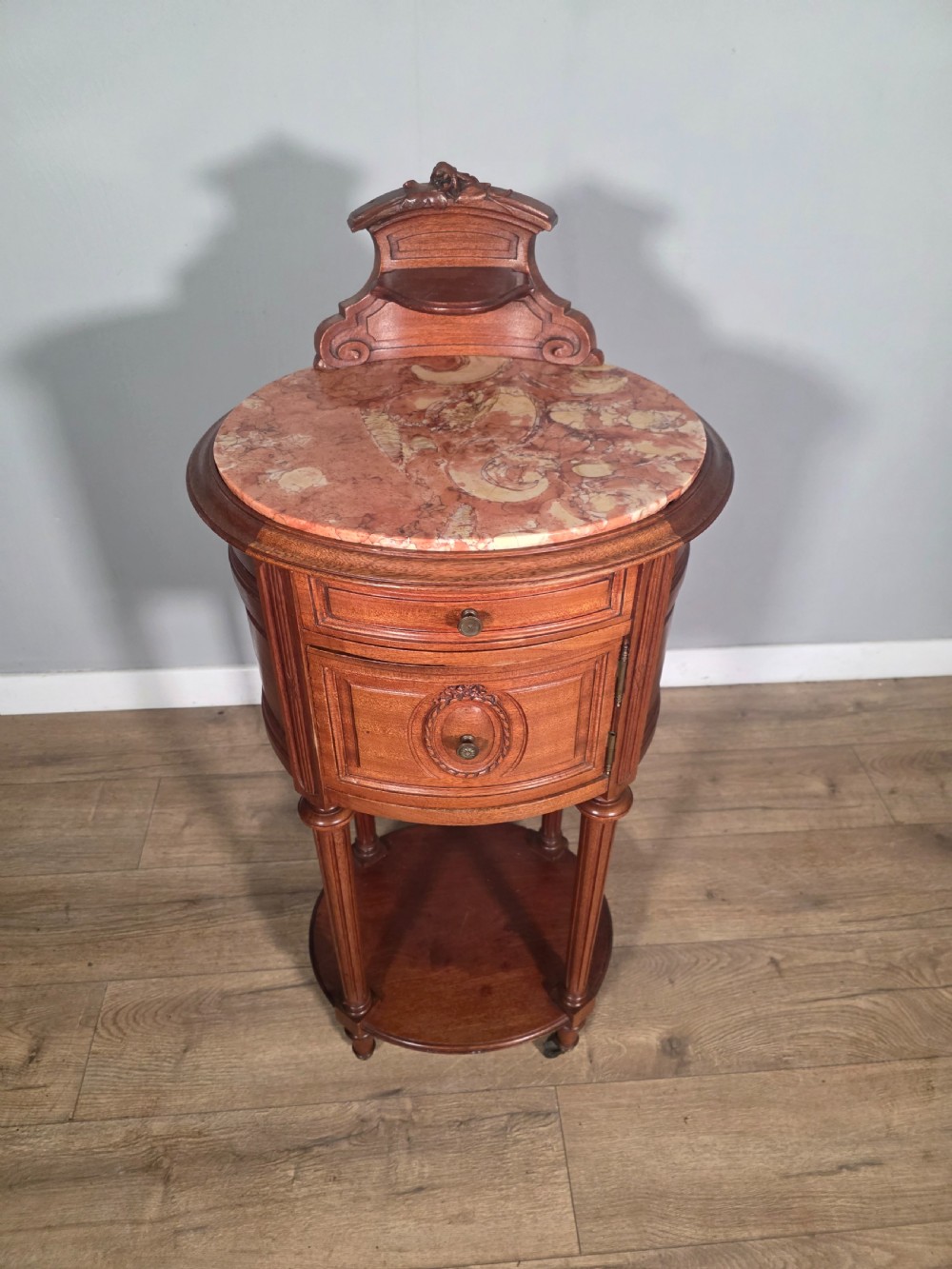 Antique French Mahogany Marble Top Bedside Cabinet 1910