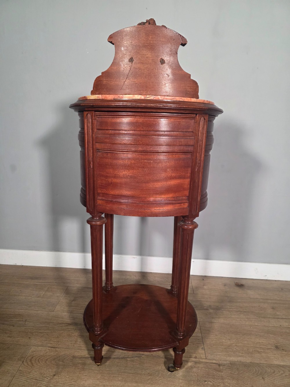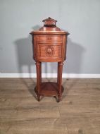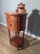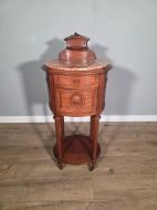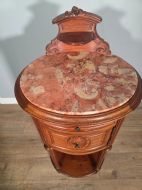 A stunning piece of antique furniture it exudes elegance and sophistication. Crafted from luxurious mahogany with marble top, this bedside cabinet is both stylish and practical, adding a touch of vintage charm to any room. This piece is sure to be a timeless addition to any home.