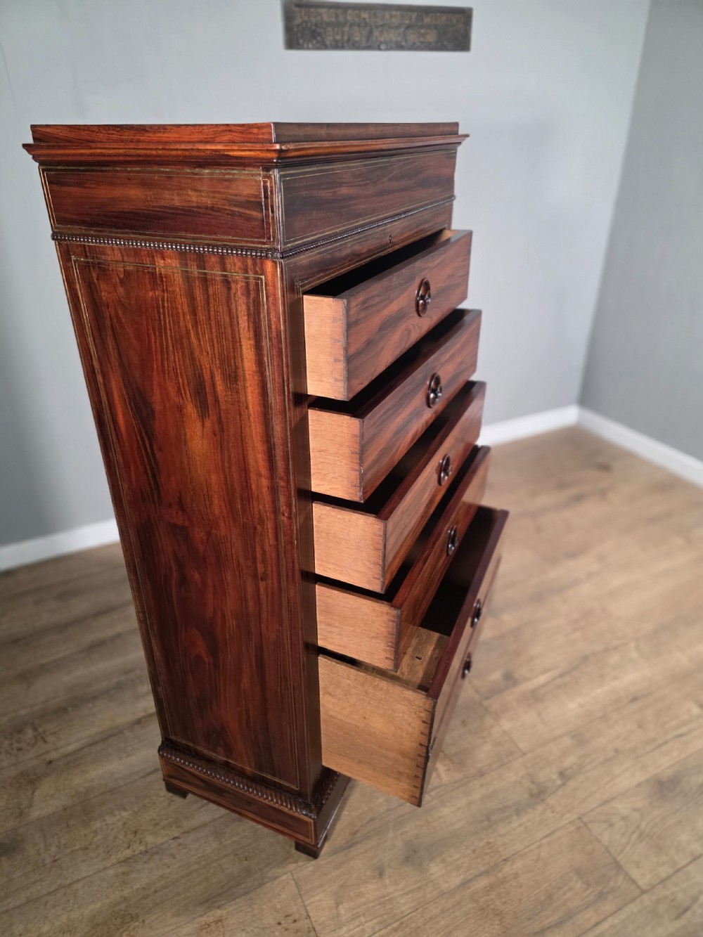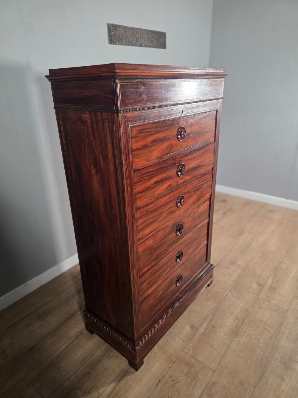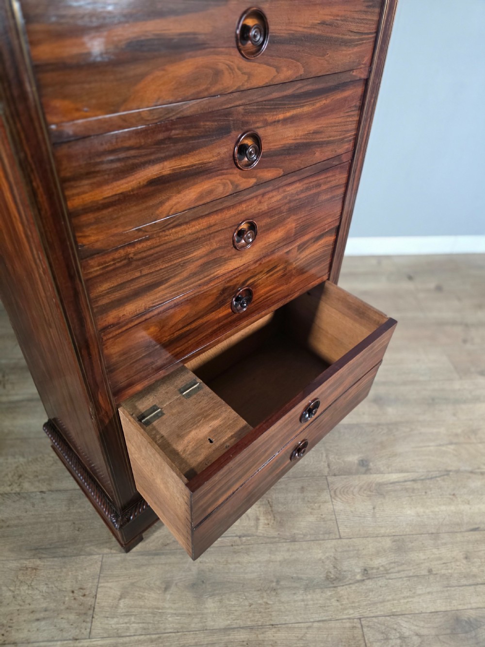 antique french rosewood brass inlaid 6 drawer chest 1880s