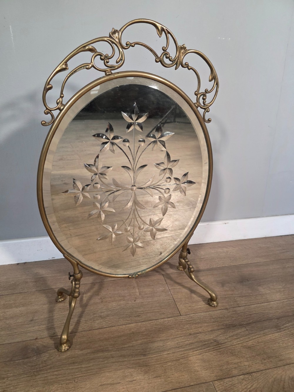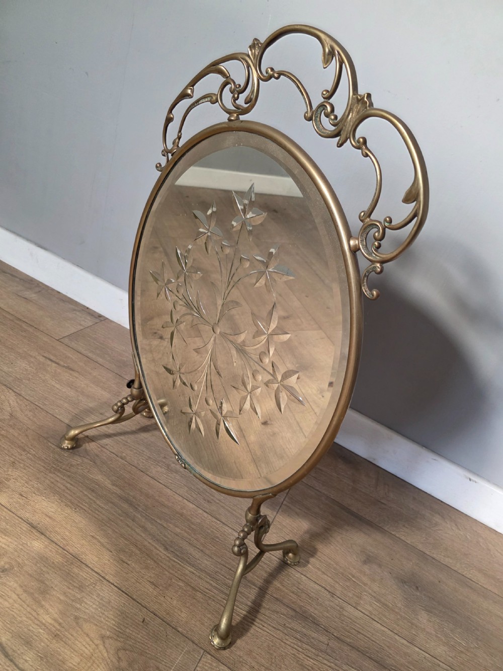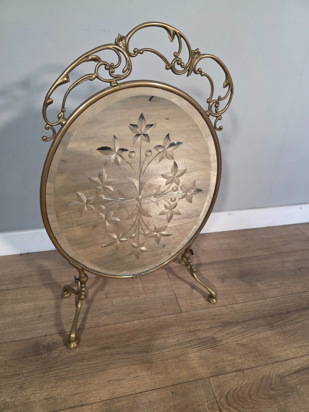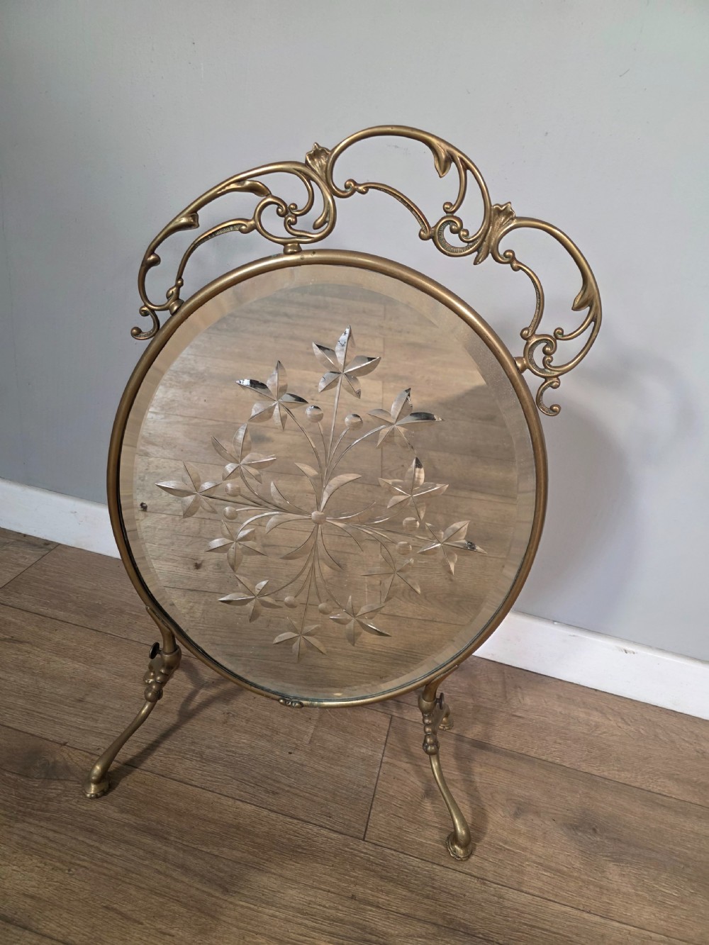 Antique Art Nouveau Style Cut Glass Fire Screen 1900s