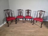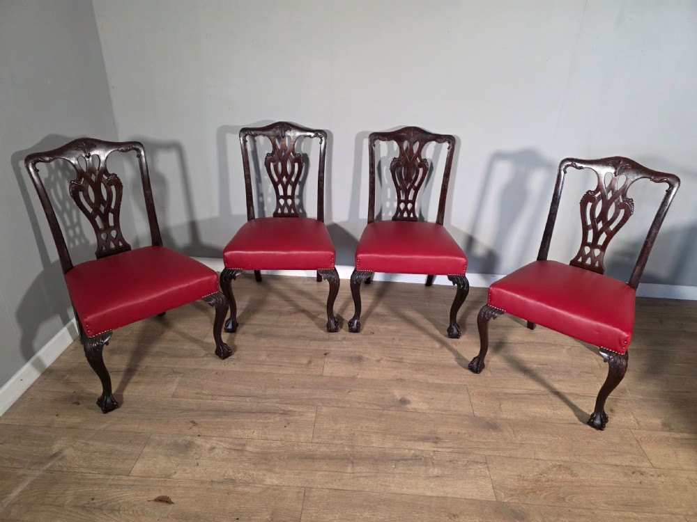 Set of 4 Antique Mahogany Chippendale Style Dining Chairs 1900s
