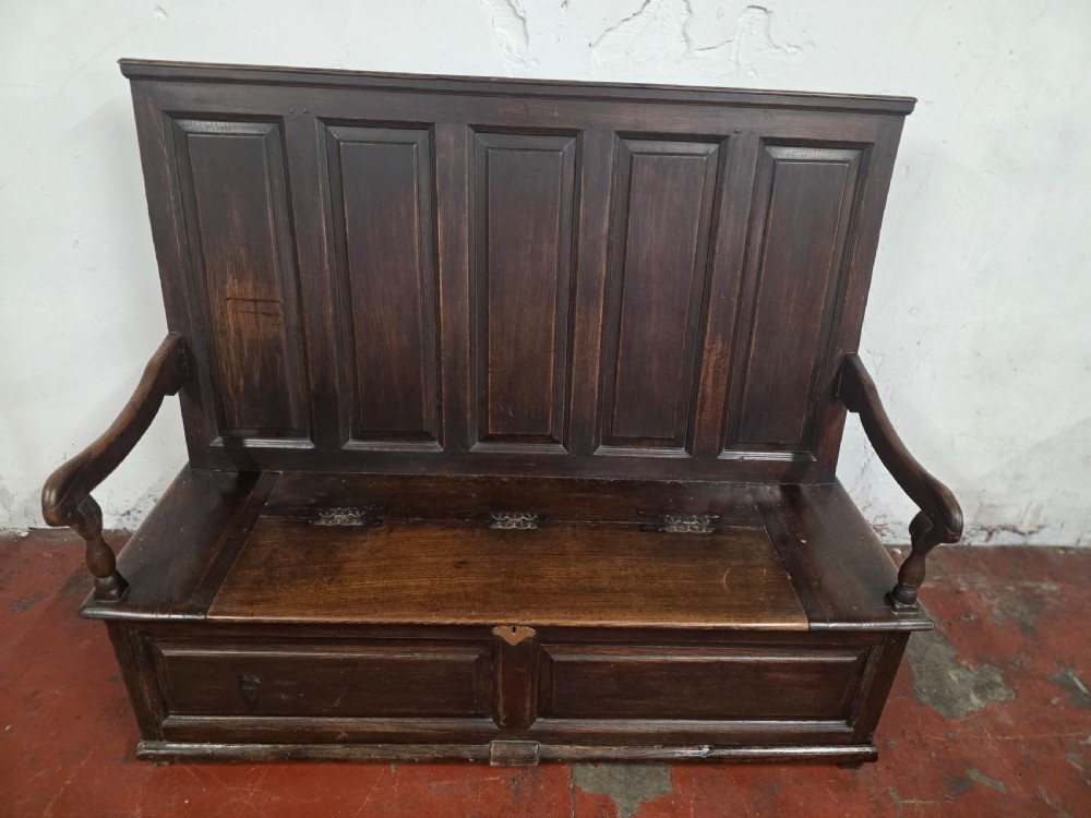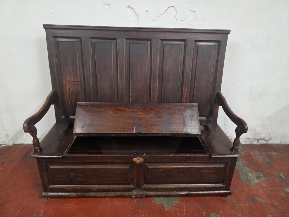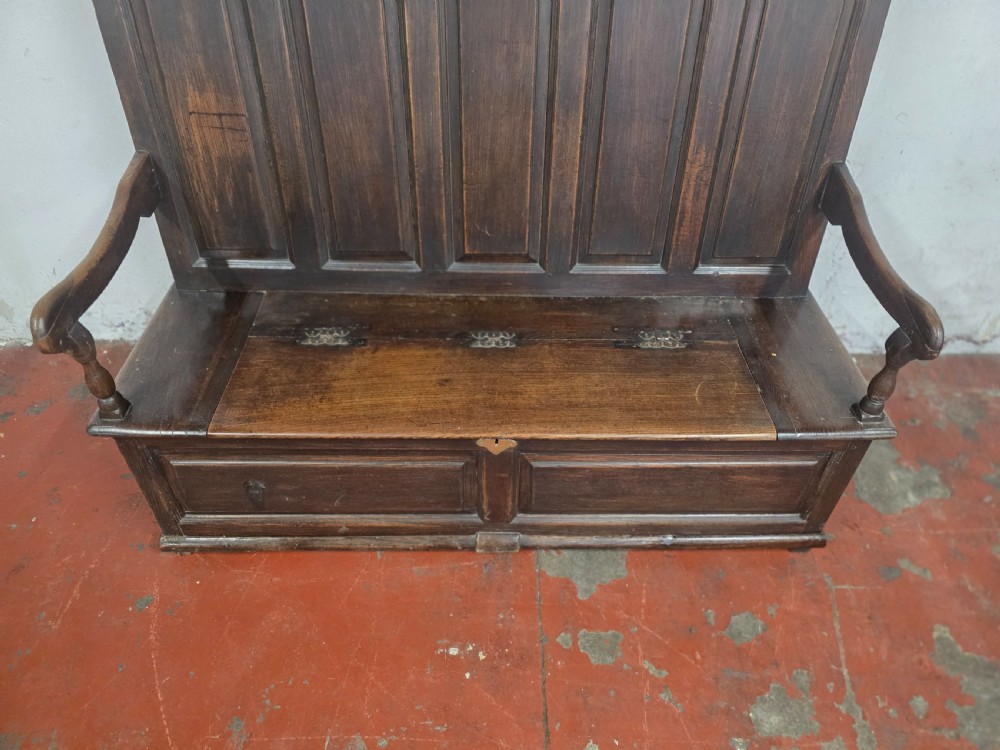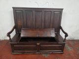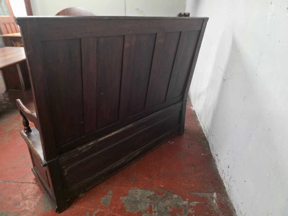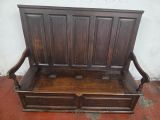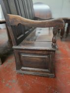 A stunning piece of furniture from the 1880s. This settle bench is not only stylish but comfortable and durable. Perfect for those wanting to add a touch of elegance to any room. This antique piece exudes historical charm and timeless sophistication.
