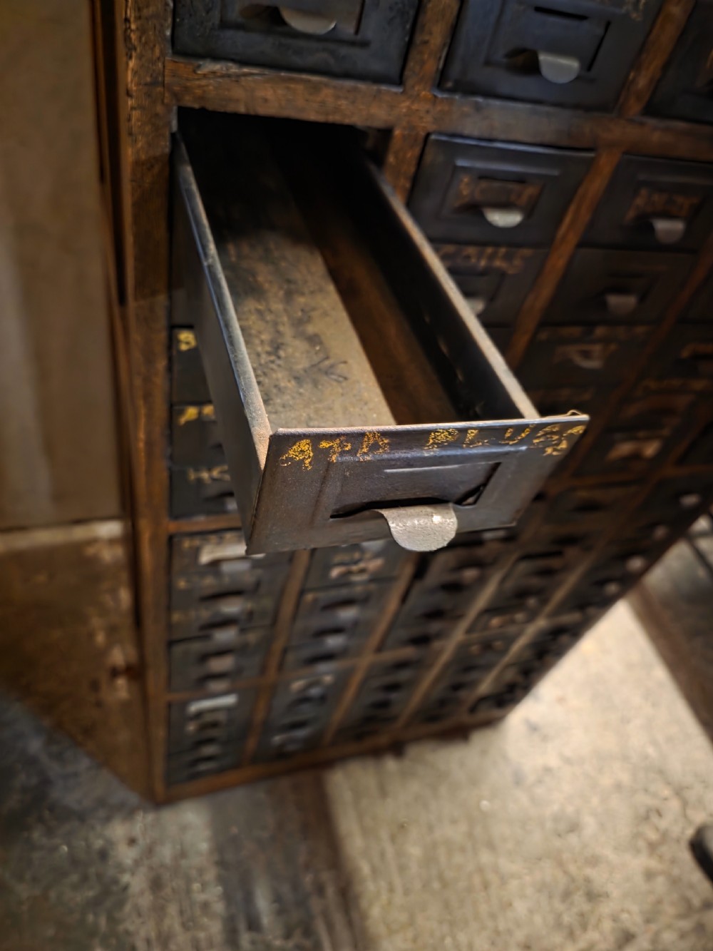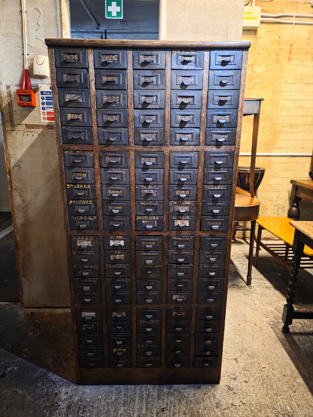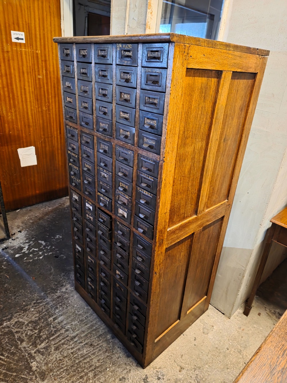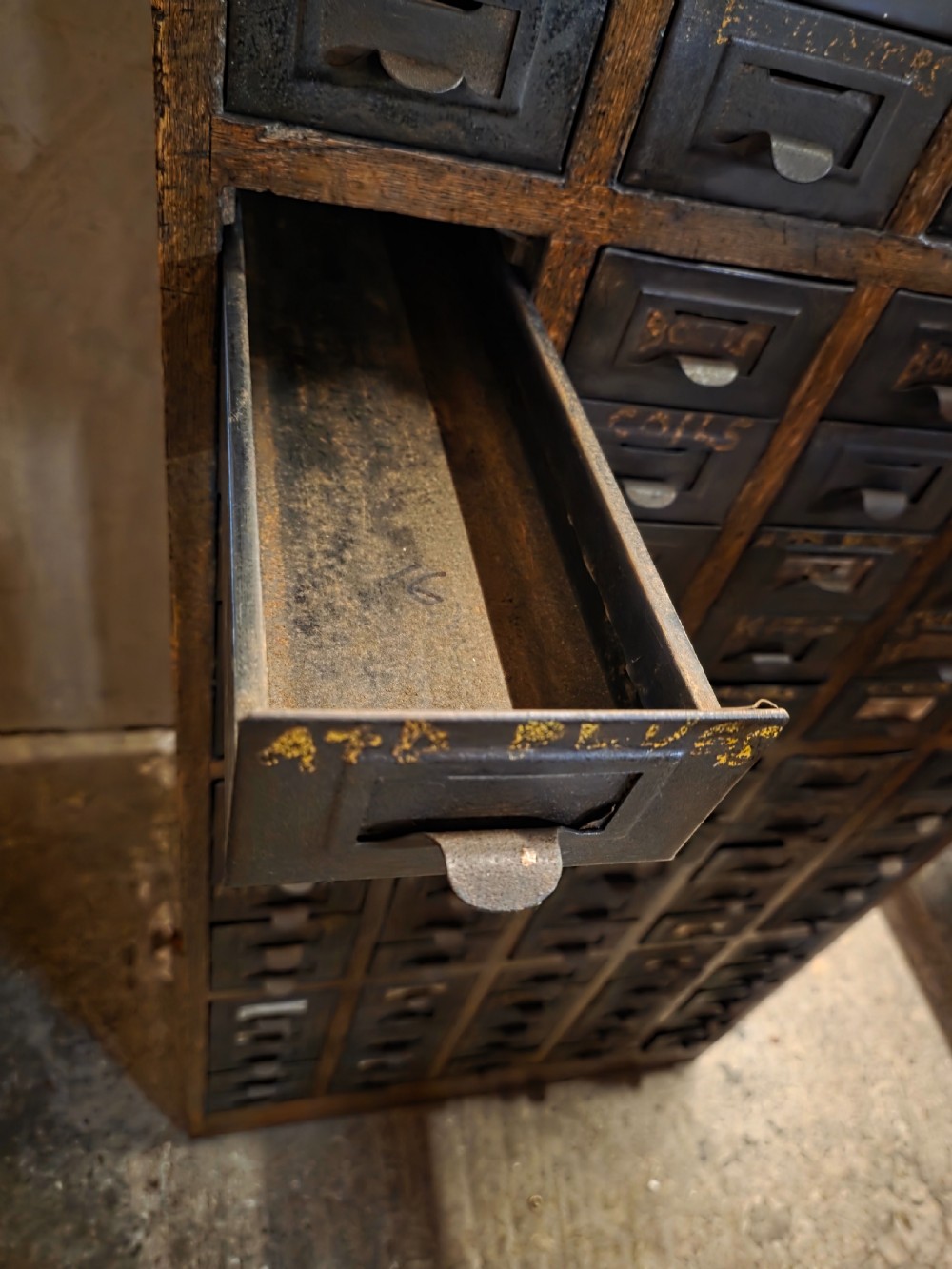 Antique Multi-Drawer Oak and Steel Cabinet 1920s.