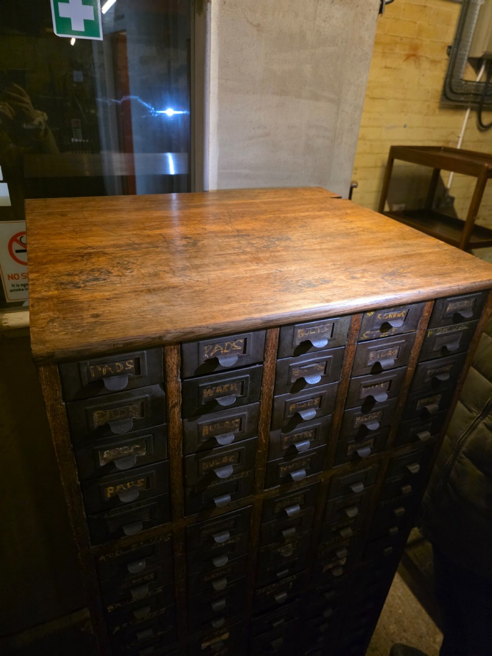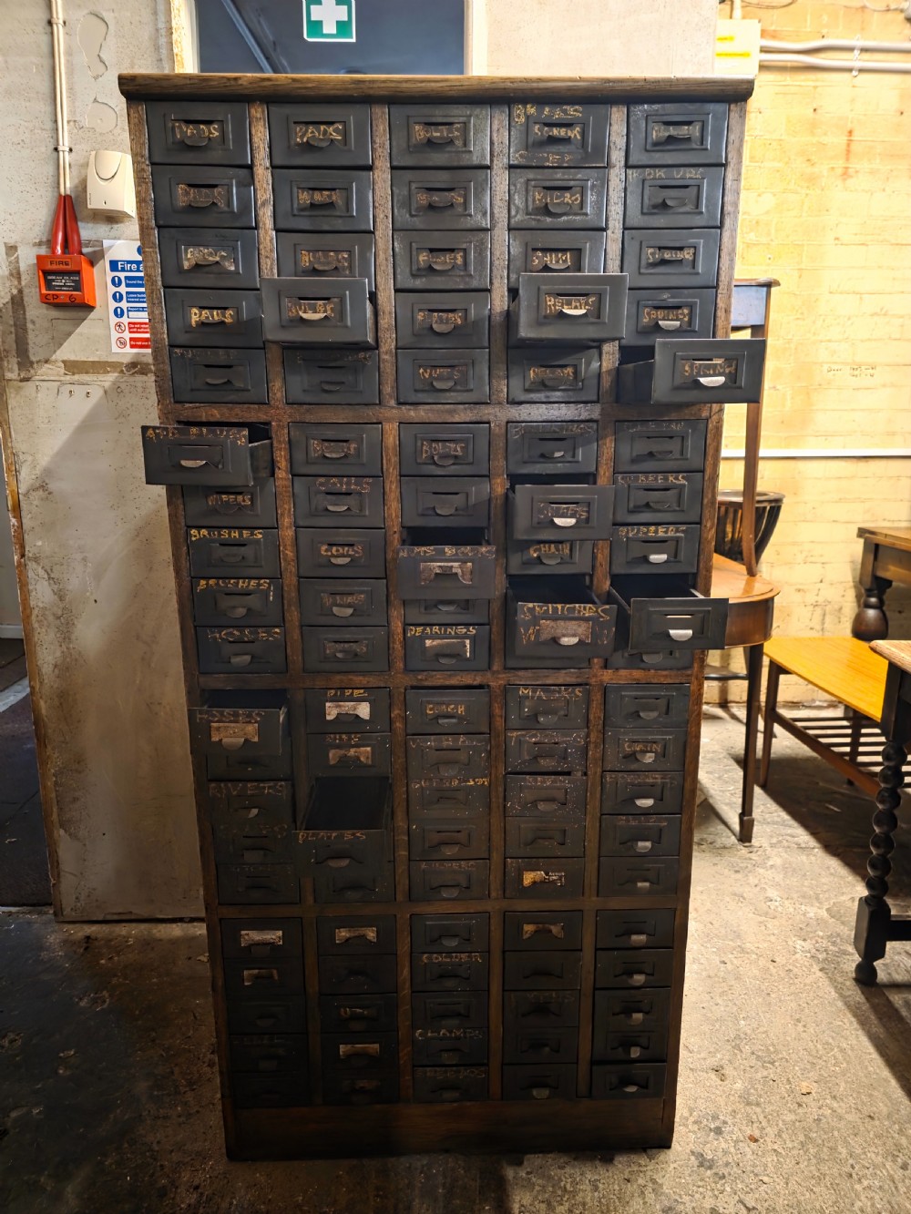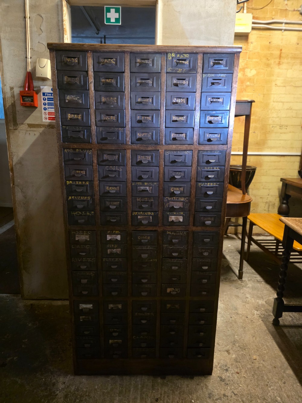 Antique Multi-Drawer Oak and Steel Cabinet 1920s.