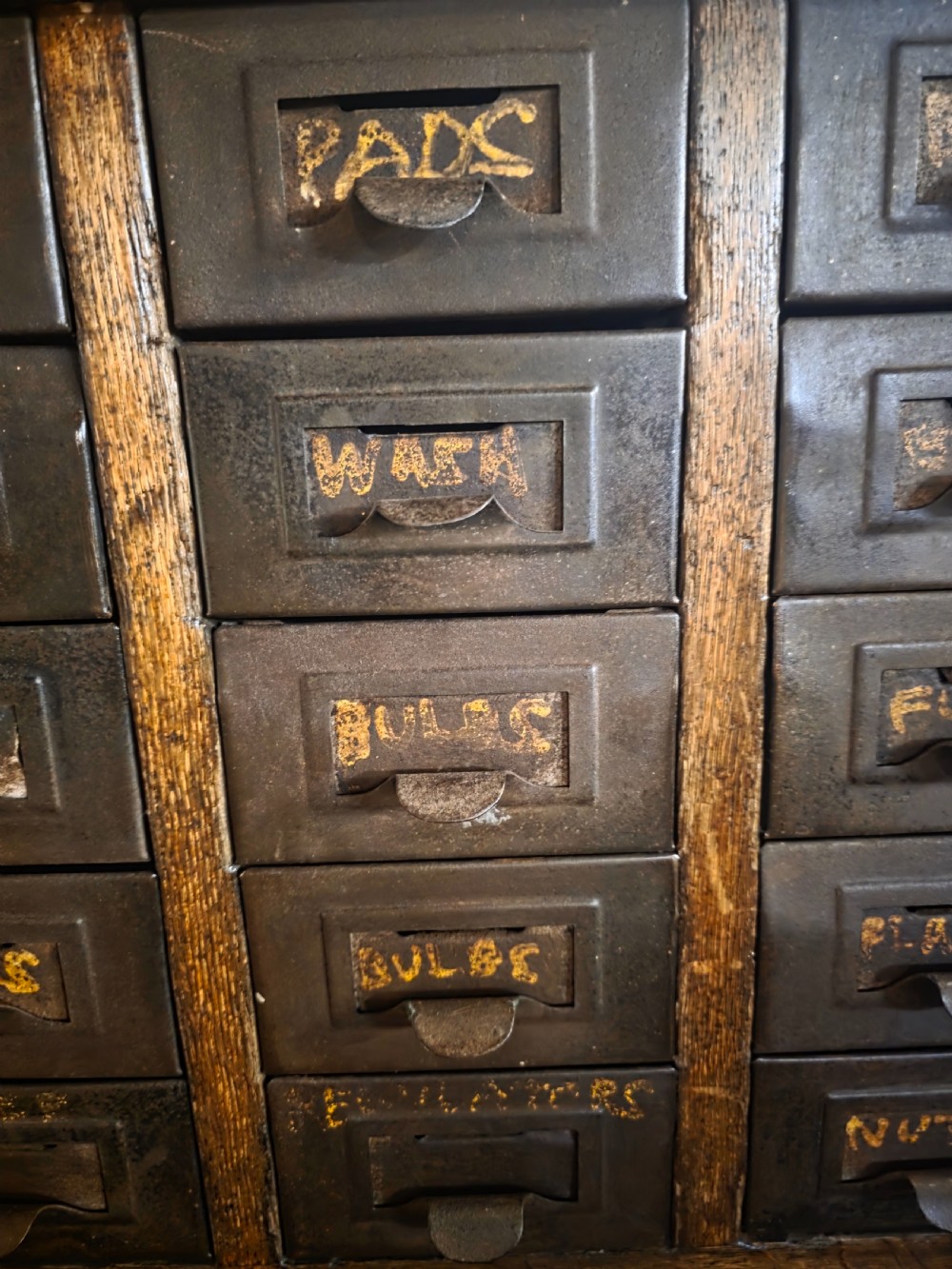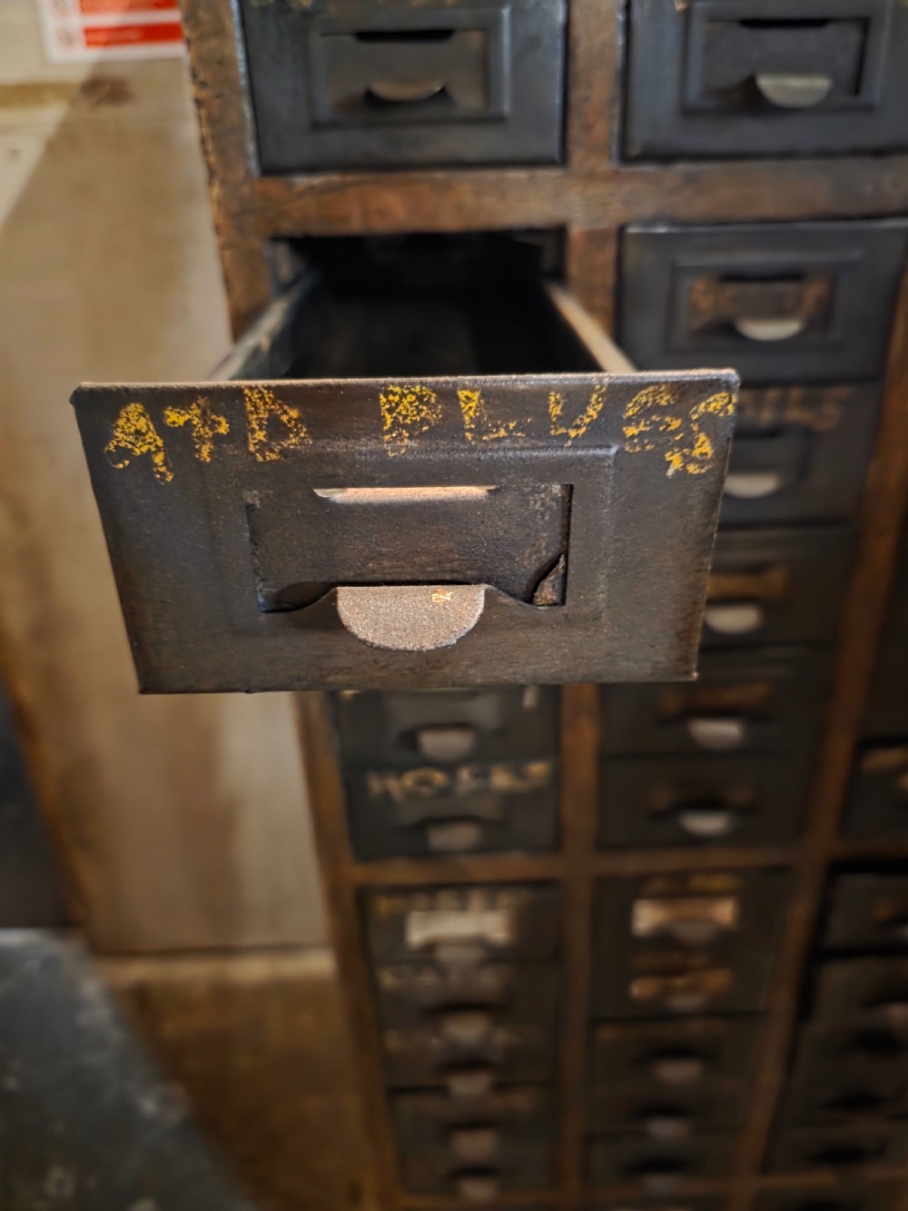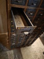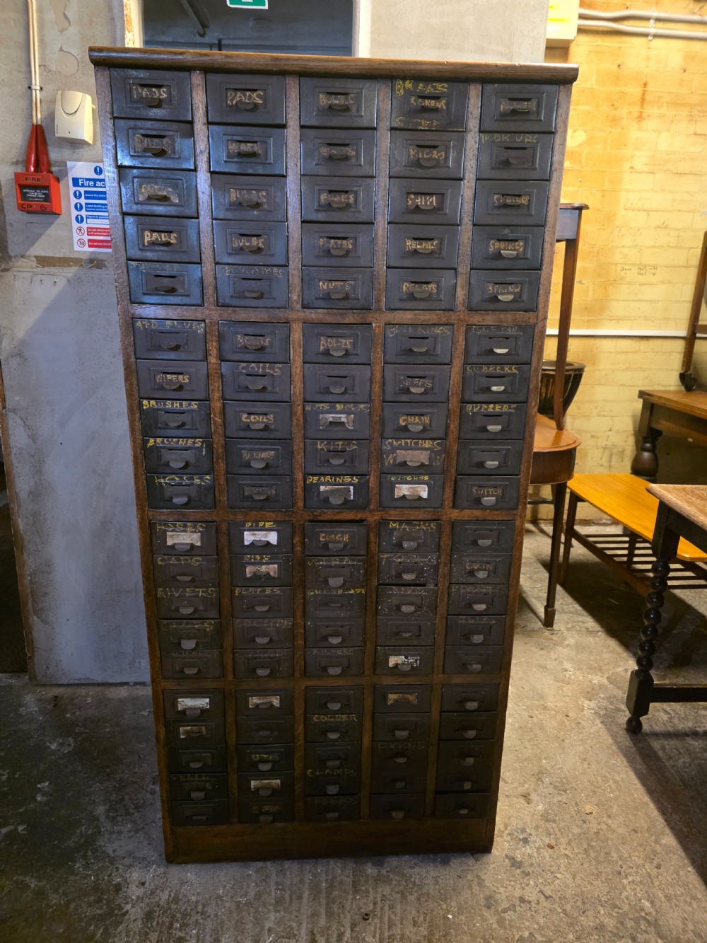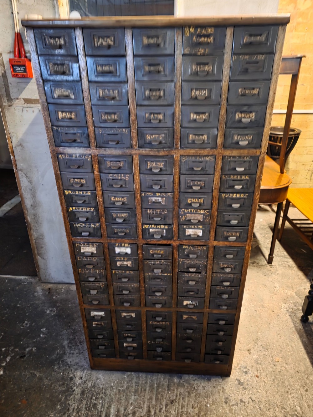 Antique Multi-Drawer Oak and Steel Cabinet 1920s.