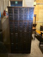 This cabinet from the 1920s exudes vintage charm with its intricate design and sturdy construction. The multi-drawer design, measuring 157cm in height, 74cm in length and 64cm in width, provides ample of storage space whilst still maintaining a classic and timeless look. Perfect for adding a touch of history and character to any room.