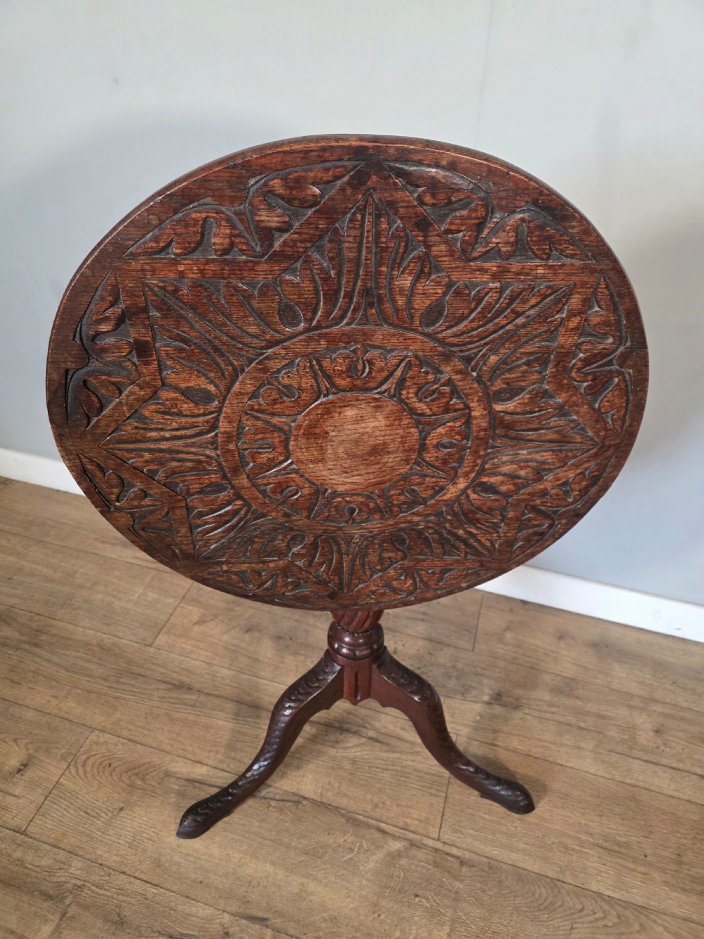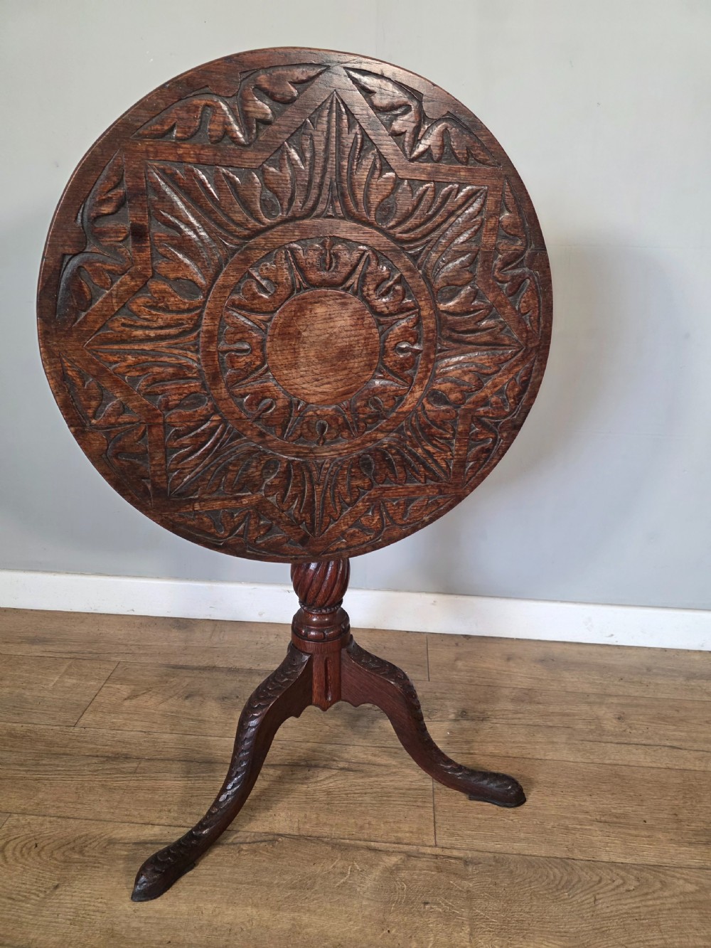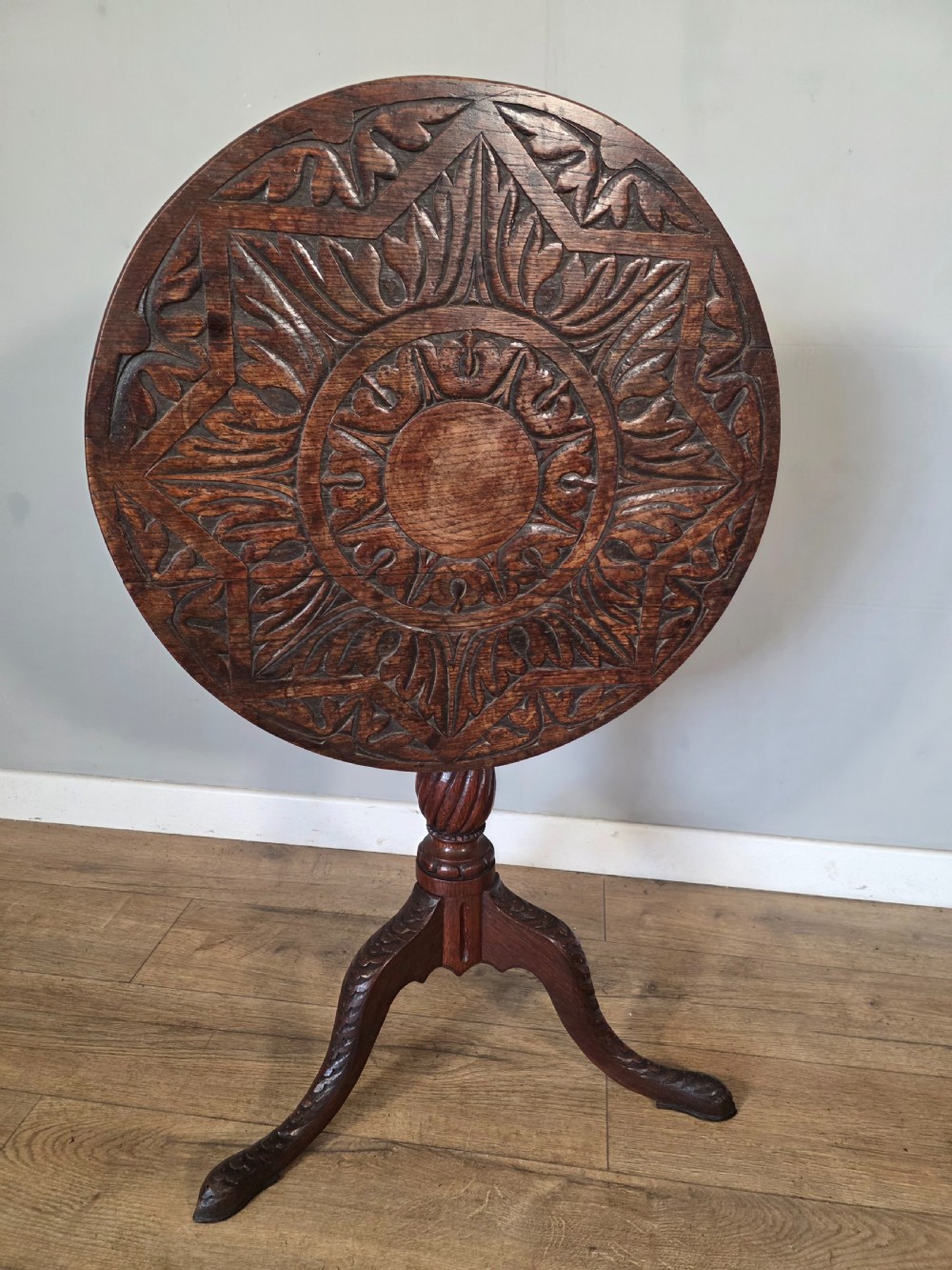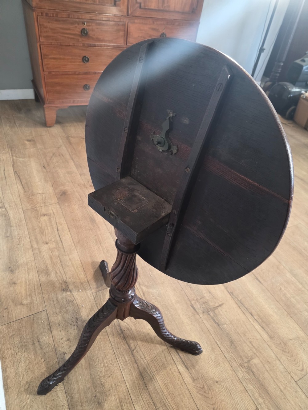 Antique Oak Carved Tilt Top Table 1840s.