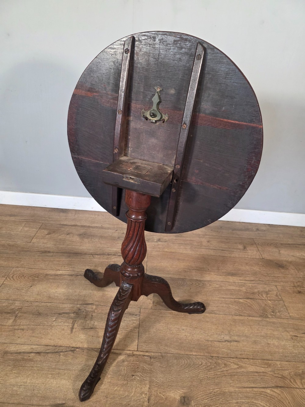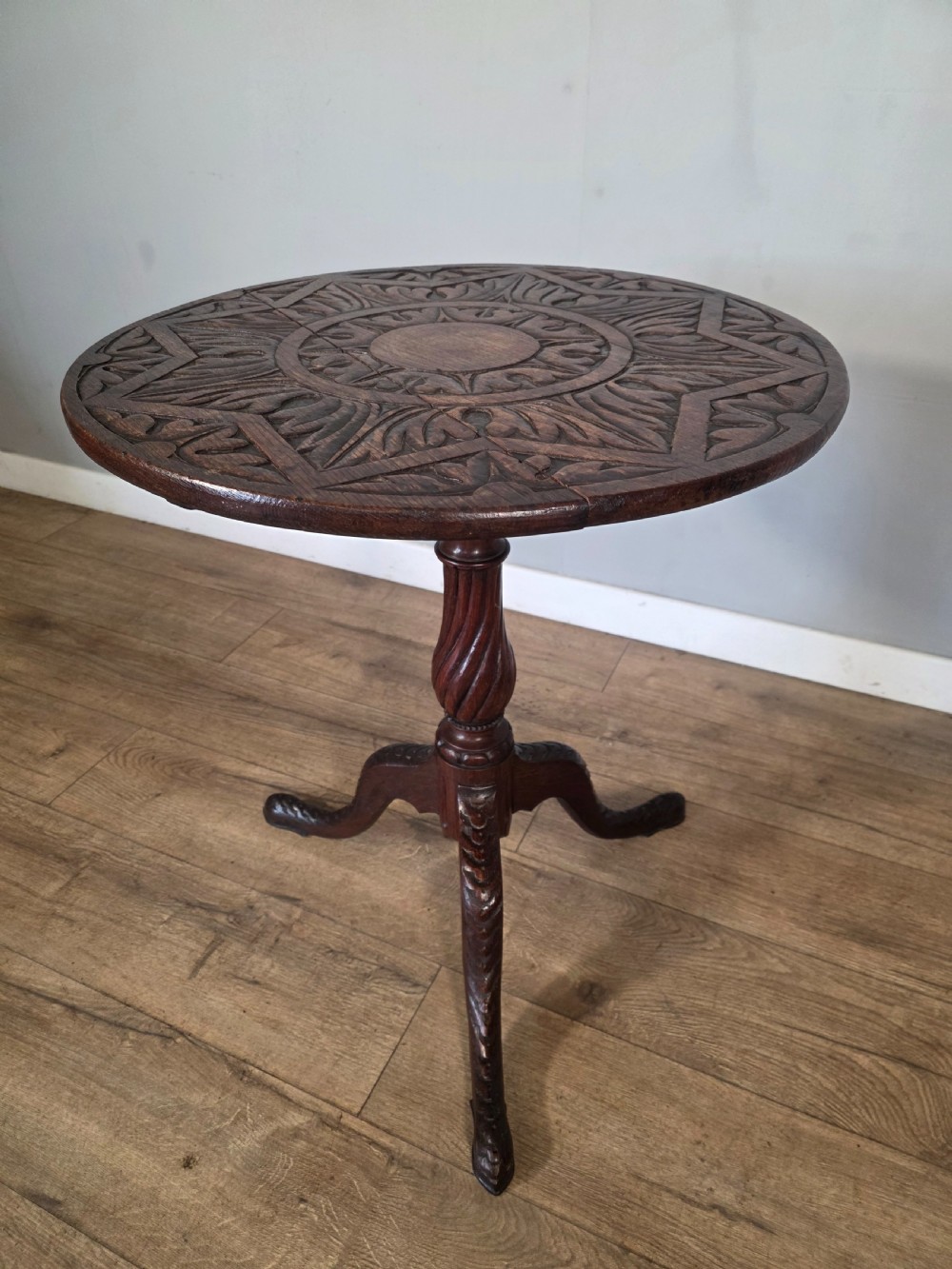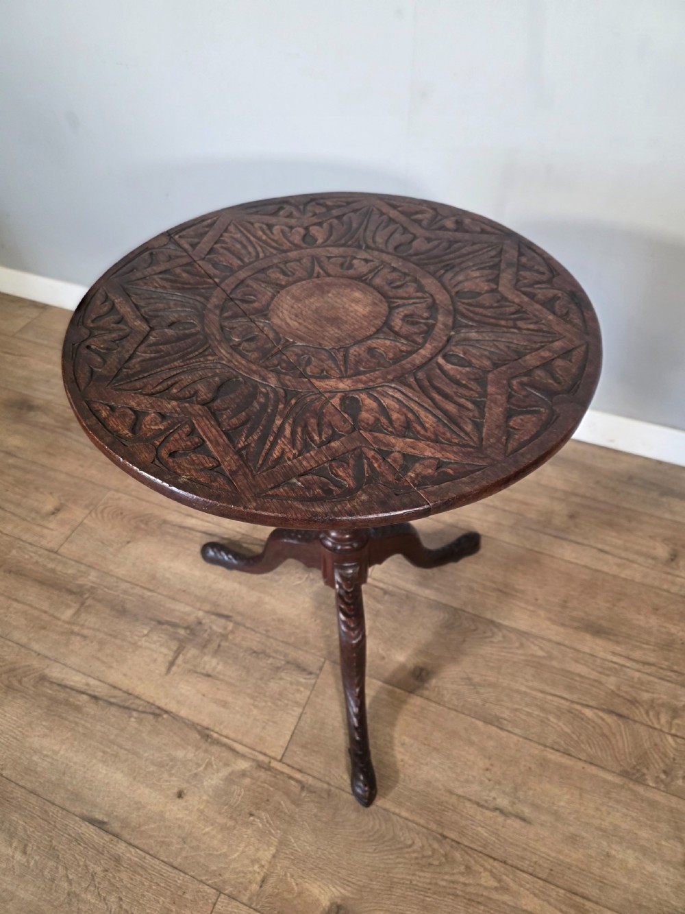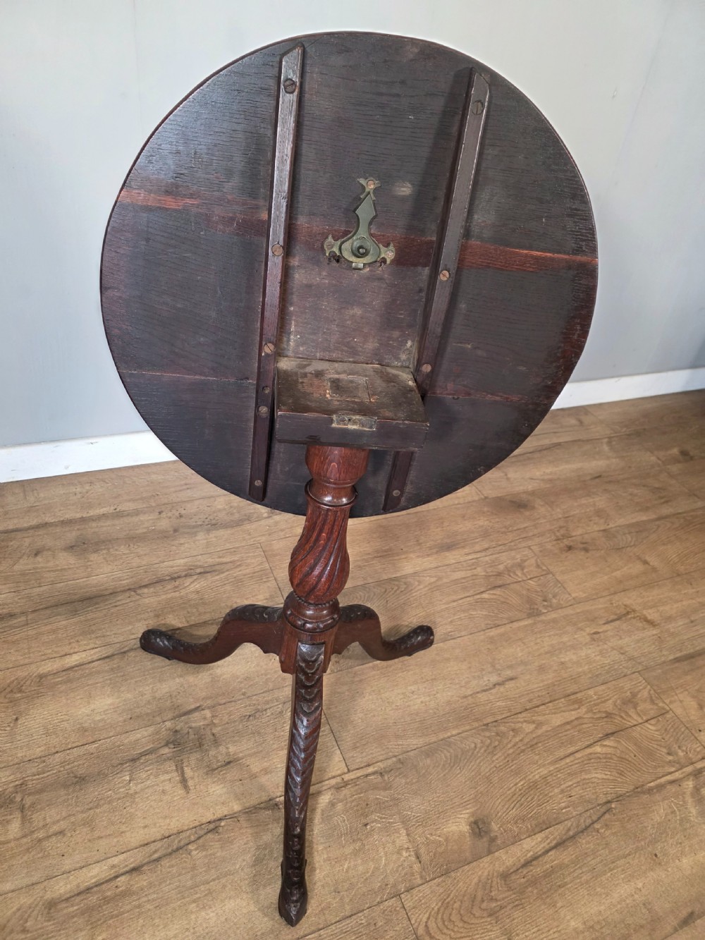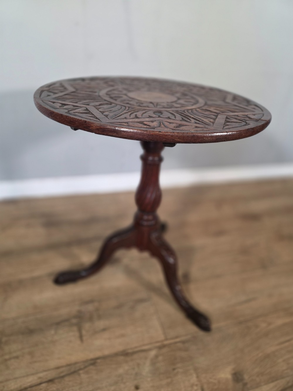 Antique Oak Carved Tilt Top Table 1840s.