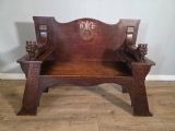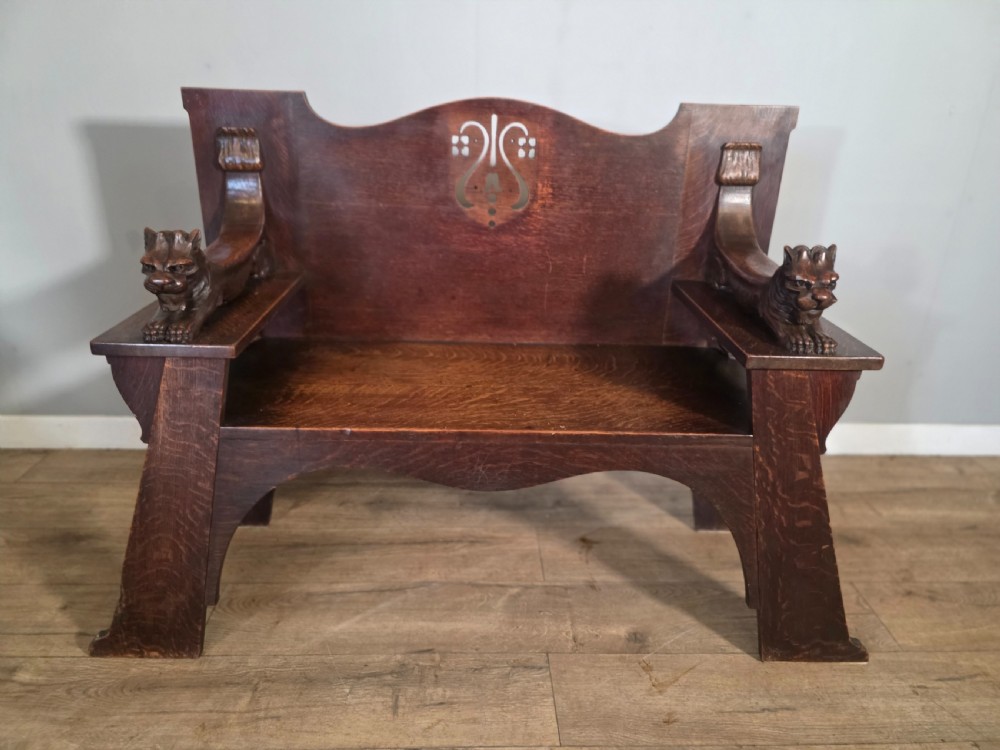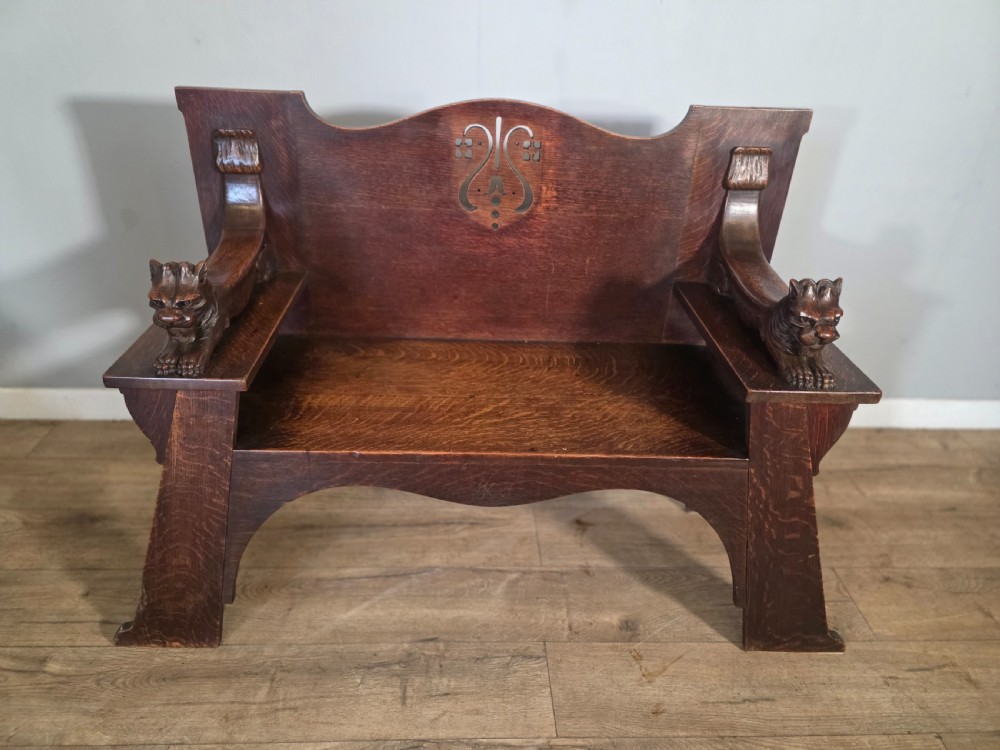 Antique Scottish Oak Arts & Crafts Bench from Wylie Lockhead Manufacturers 1900s