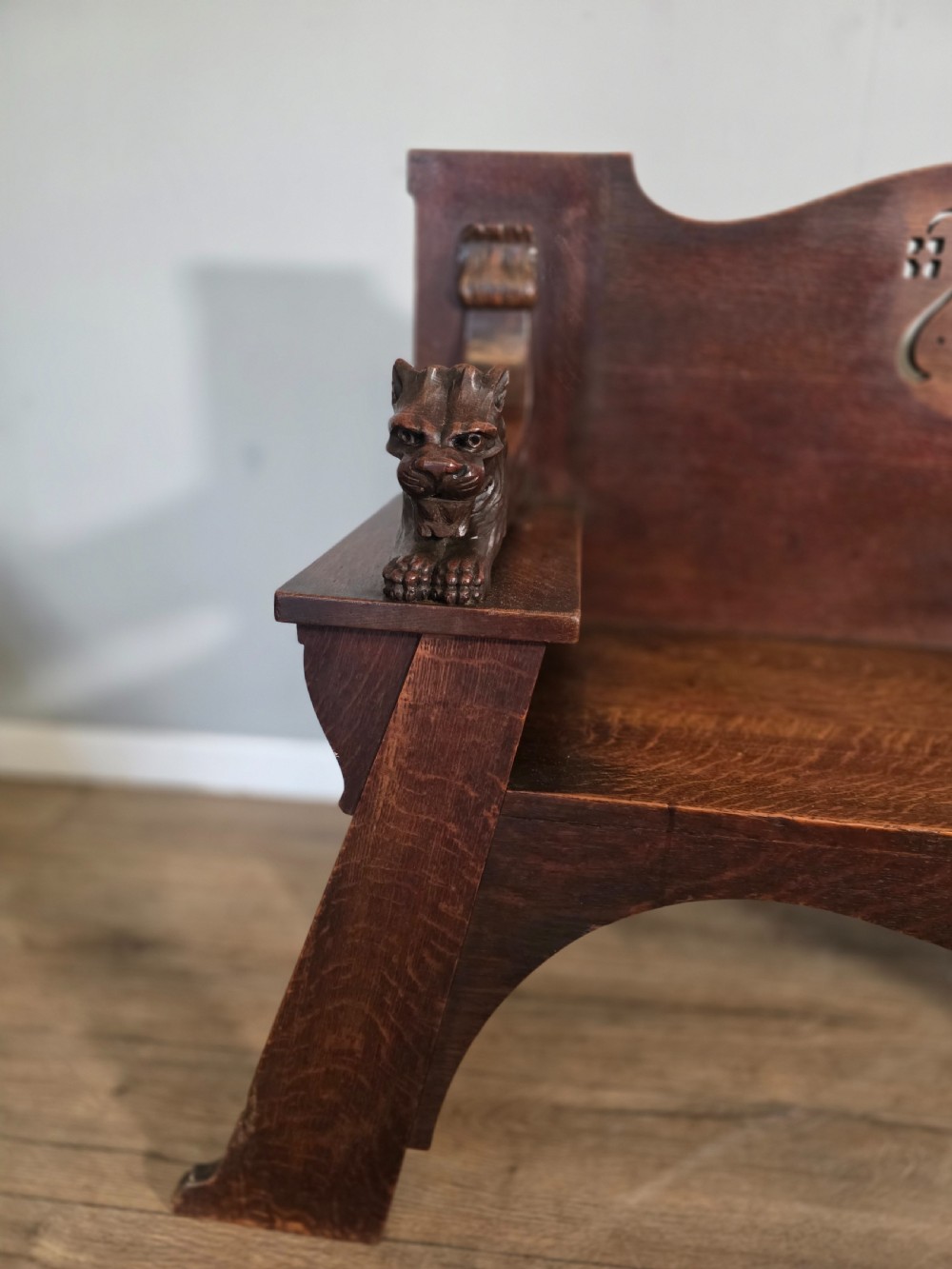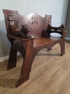 This piece of furniture exudes classic elegance. A very stylish seating option for any living space. Crafted from high-quality quakity oak this bench showcases the timeless beauty and craftmanship of arts ans crafts movement, making it a standout piece to any antique furniture collection.