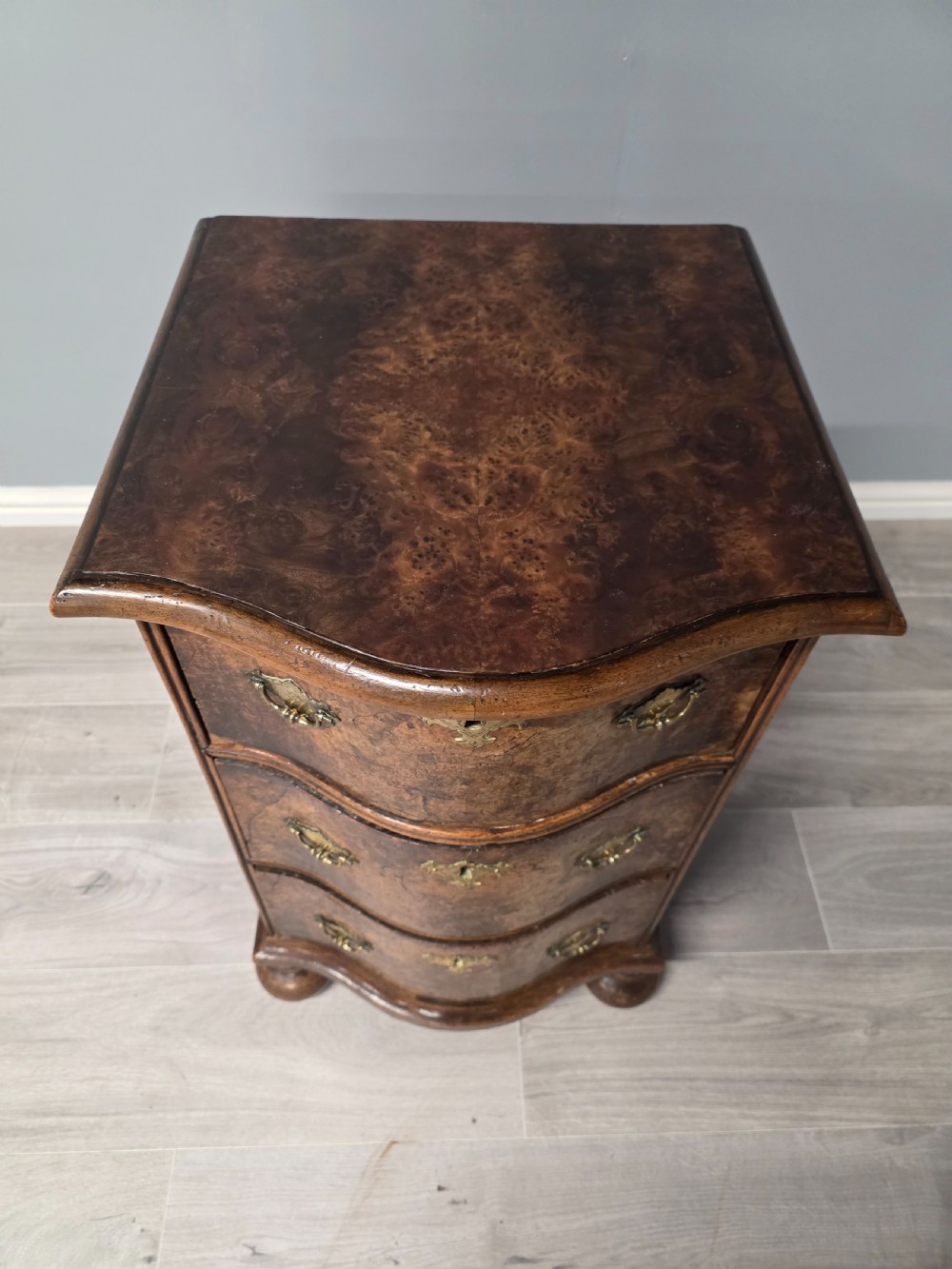 A stunning piece of vintage furniture. It offers ample storage space for clothing and accessories. The rich walnut finish and classic design make it a timeless addition to any home, perfect for those who appreciate antique furniture with a touch of history and charm.