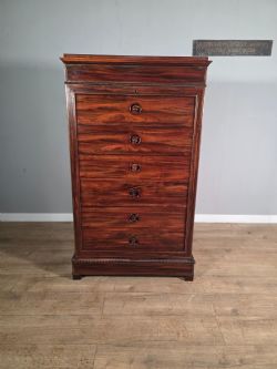 The cupboard doors are block moulded with geometric patterns and behind are 3 drawers with small pull handles. The top lifts off for ease of transport.