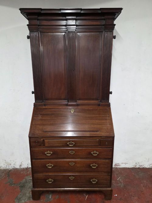 A fine inlaid Edwardian mahogany bureau bookcase ...