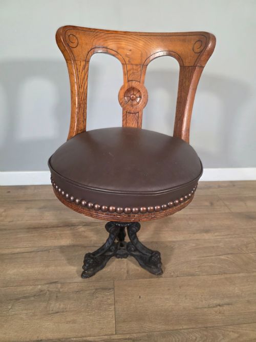 Antique 1890s Cast Iron & Oak Upholstered ...