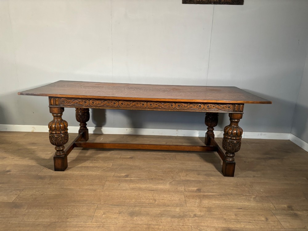 A good Jacobean revival carved oak refectory table