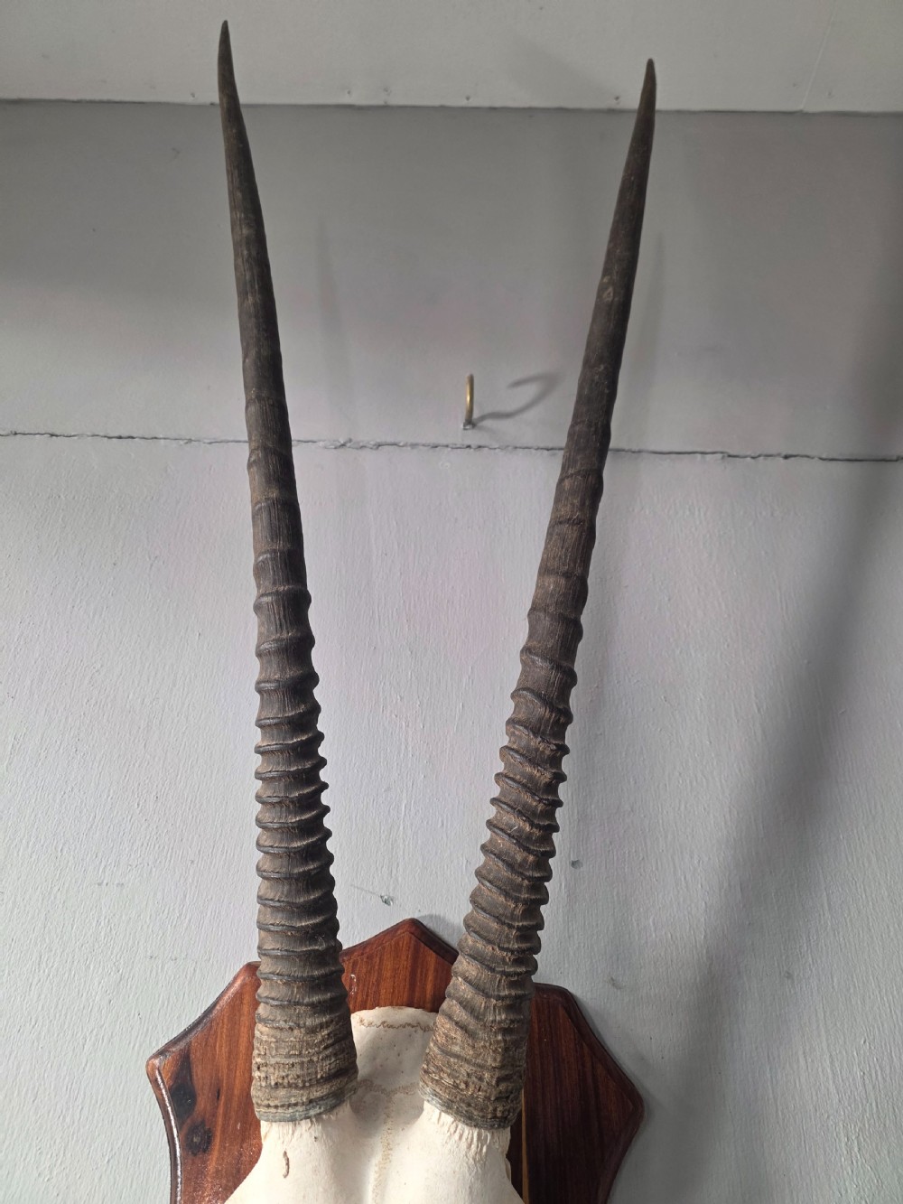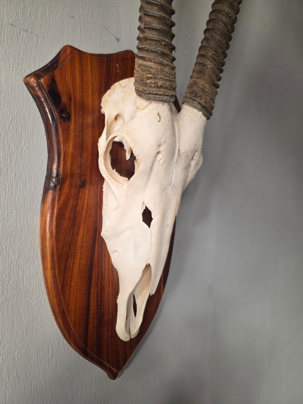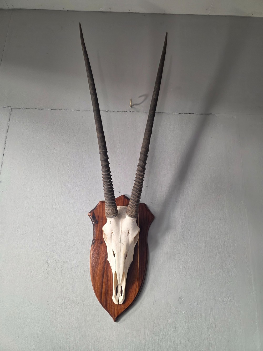 Namibian Oryx Skull and Horns Mounted on a Wood Shield