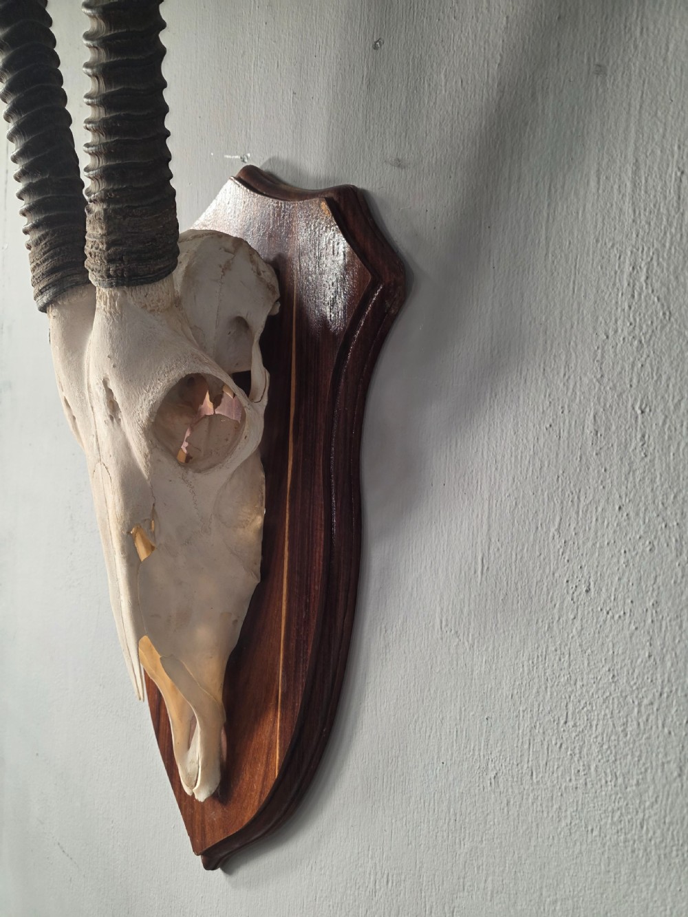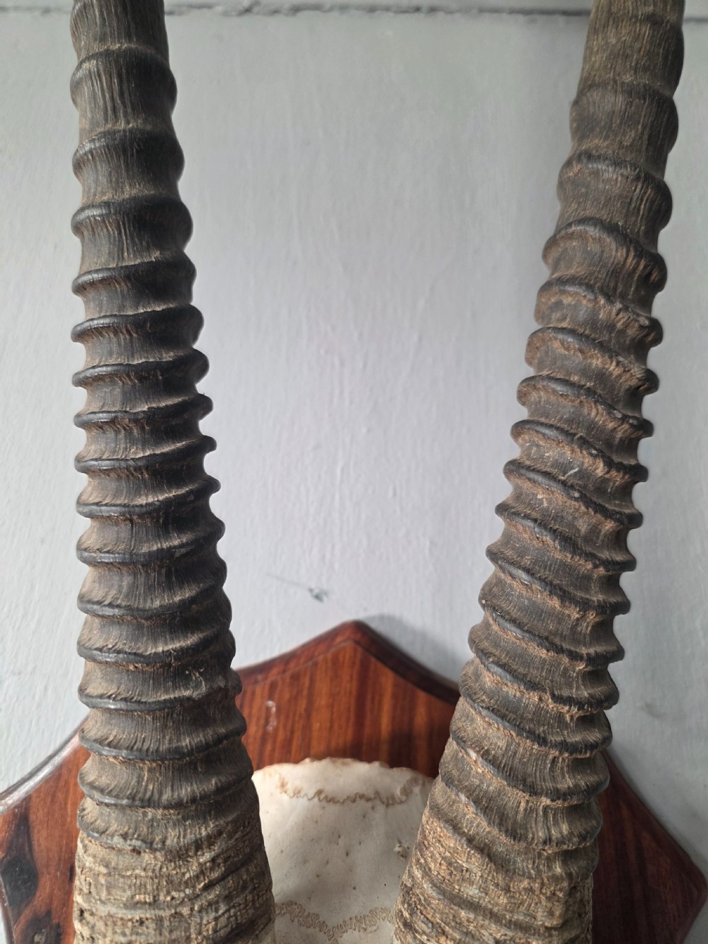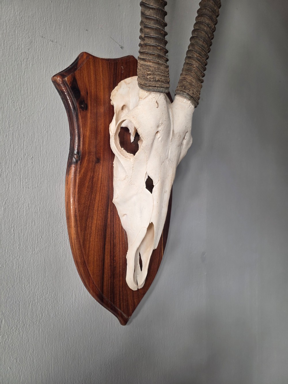 Namibian Oryx Skull and Horns Mounted on a Wood Shield