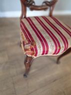 These chairs exude elegance and sophistication with there antique design and rich brown colour. Made from high-quality rosewood material, the chairs are comfortable and the frames are all solid and sturdy but they would benefit from reupholstry. The chairs do have beautiful detailed cabriole legs.