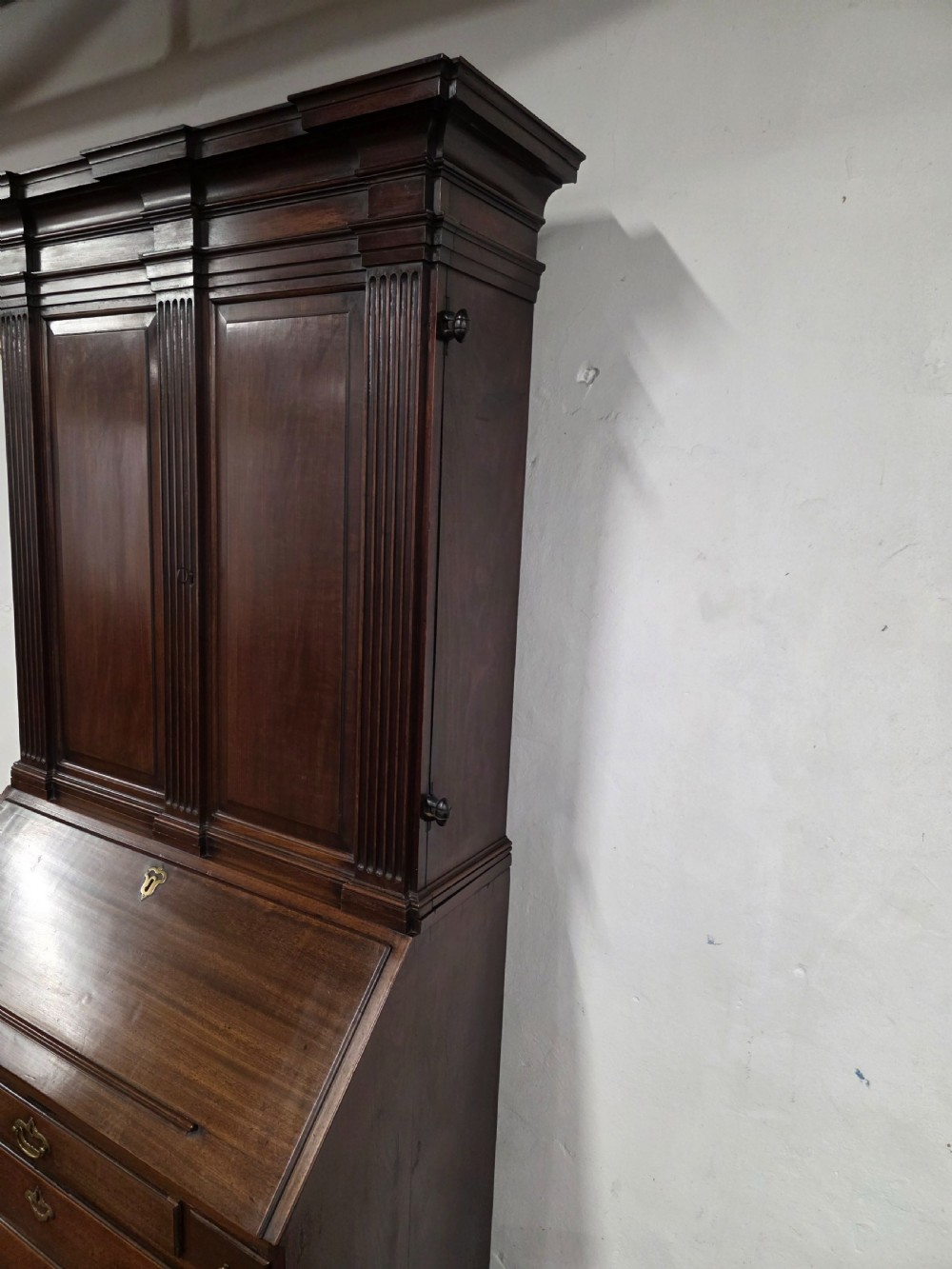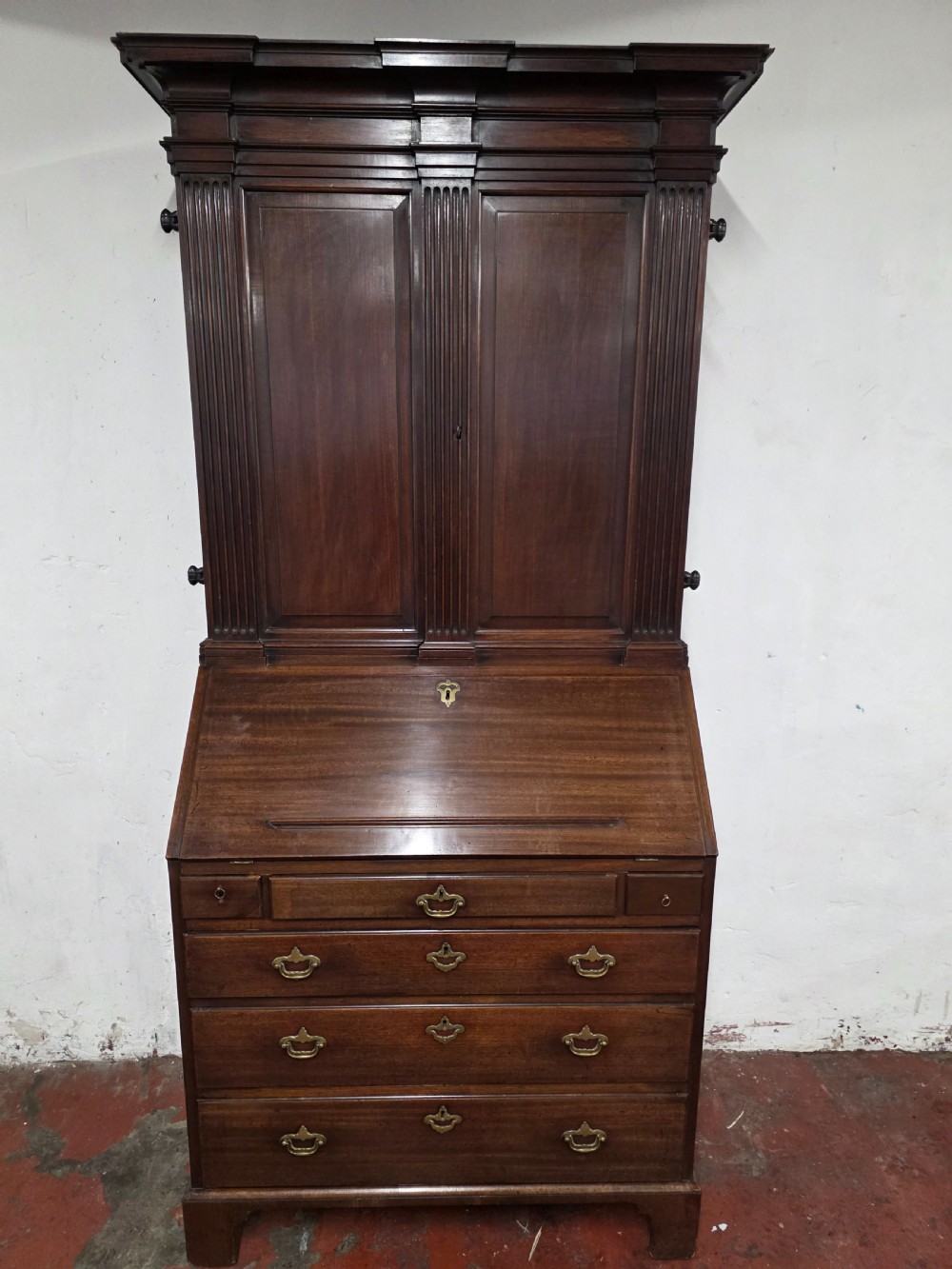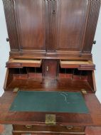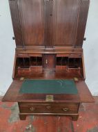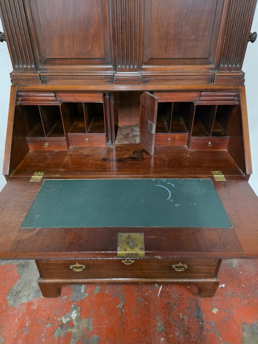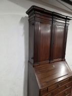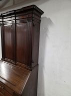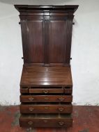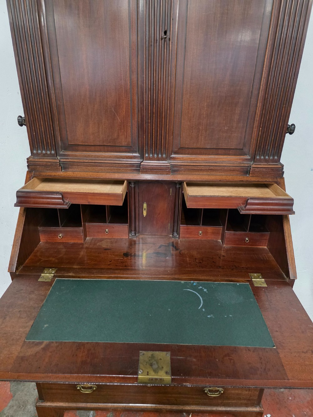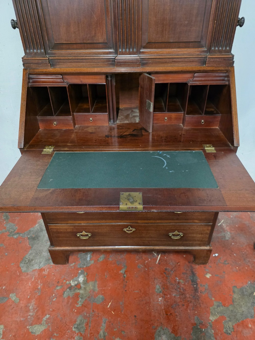 This piece of furniture provides ample of storage space for books and decorative items. Crafted from luxurious mahogany, this piece adds a touch of elegance to any room with its timeless design and intricate details. This piece of furniture is very practical for any home/office. Its has all orginal hardware throughout and oak lined with orginal reading book ledge and secret drawers to the interior. It also has unusual blacksmith made Iron hinges to the bookcase. A lovely piece of orginal Georgian furniture.