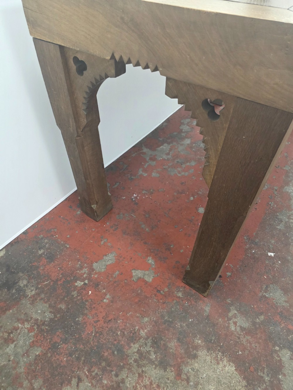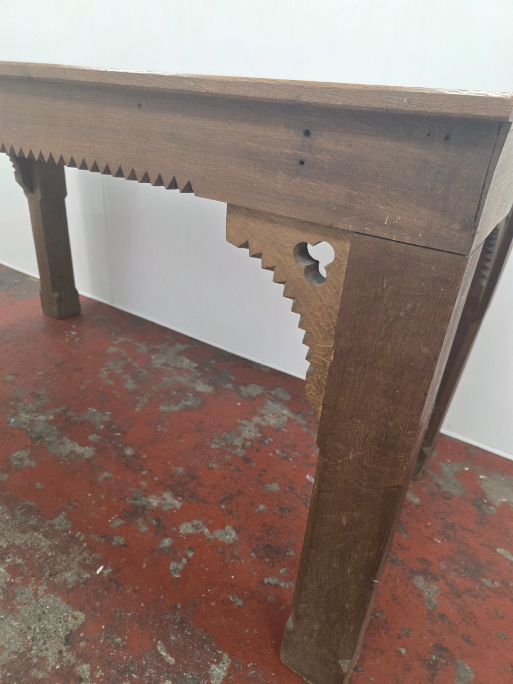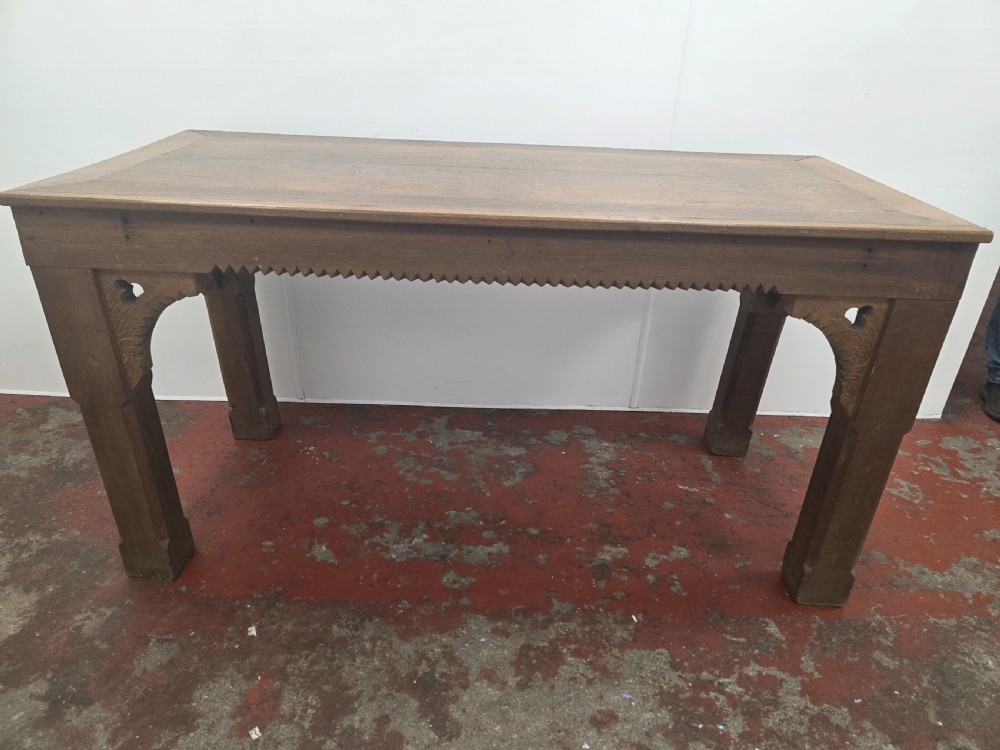Antique 1900s Oak Gothic Console Table