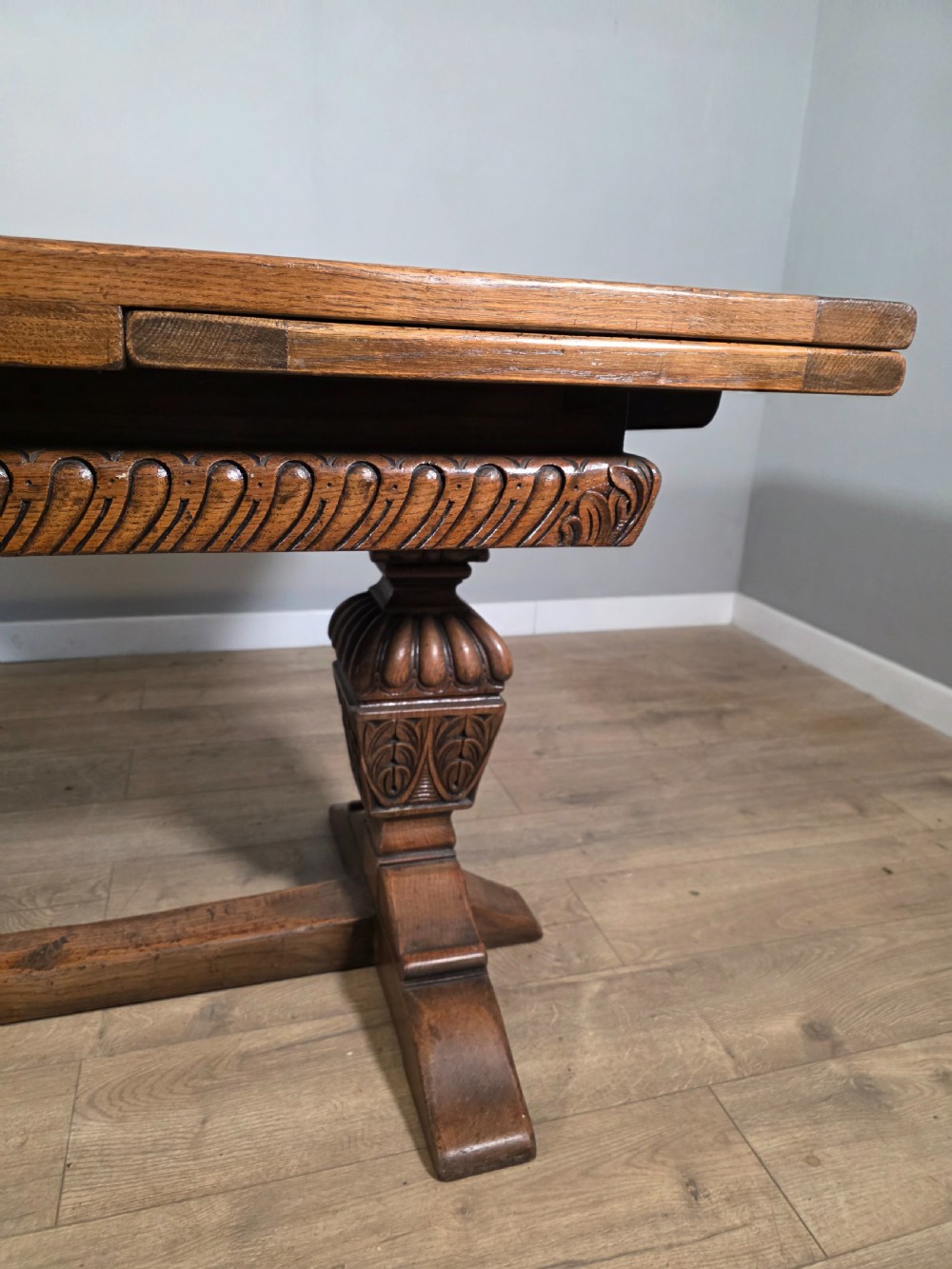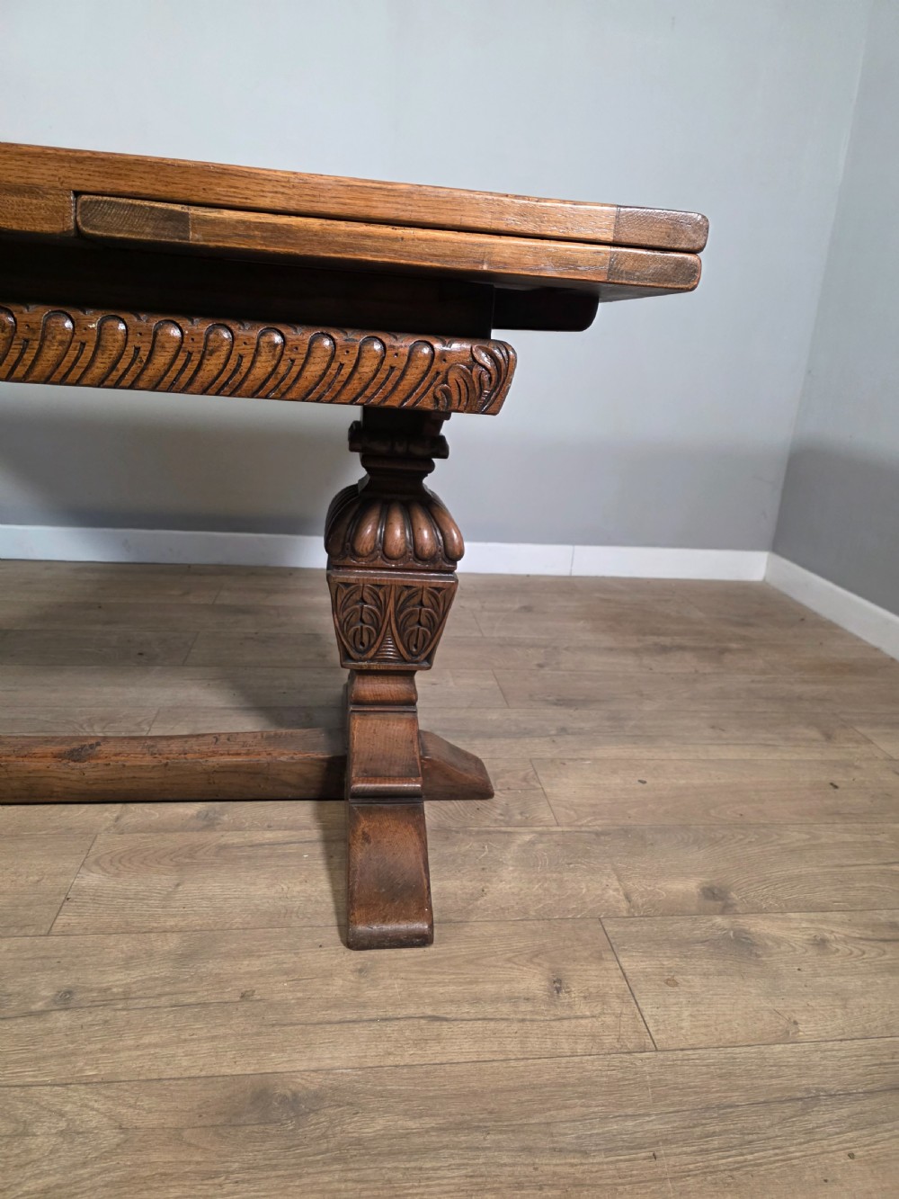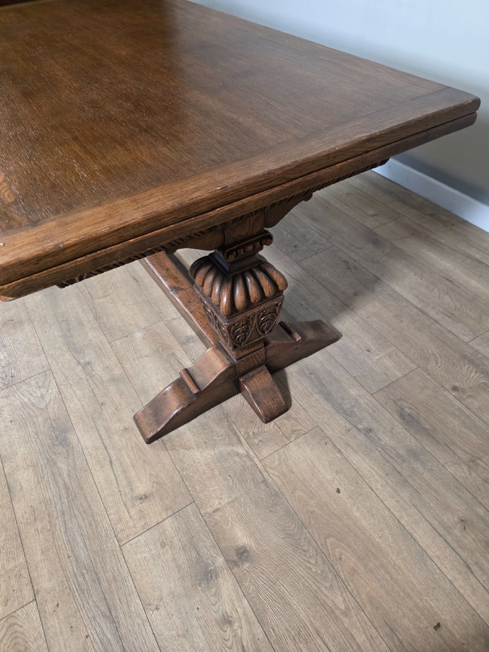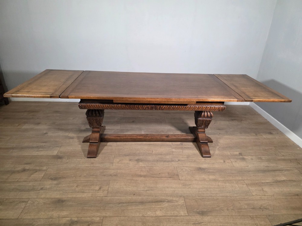 This dining room table exudes charm and elegance, perfect for adding a touch of vintage sophistication to any dining room. Crafted from high-quality quality oak this timeless piece is sure to be a focal point in any home.