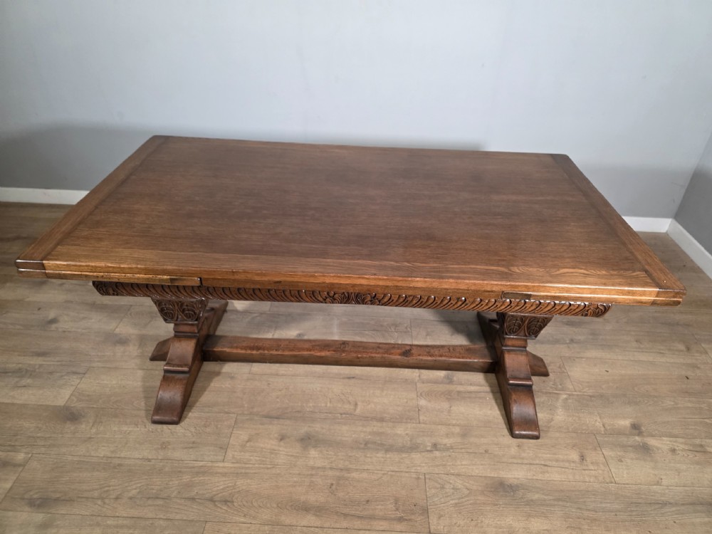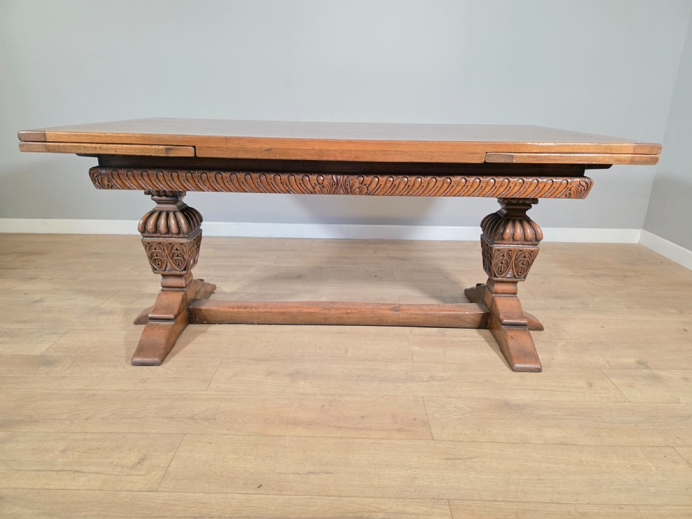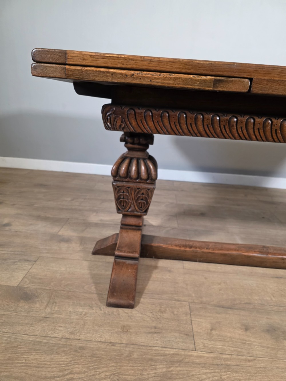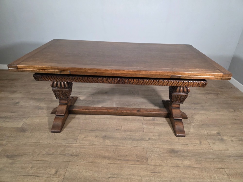 This dining room table exudes charm and elegance, perfect for adding a touch of vintage sophistication to any dining room. Crafted from high-quality quality oak this timeless piece is sure to be a focal point in any home.