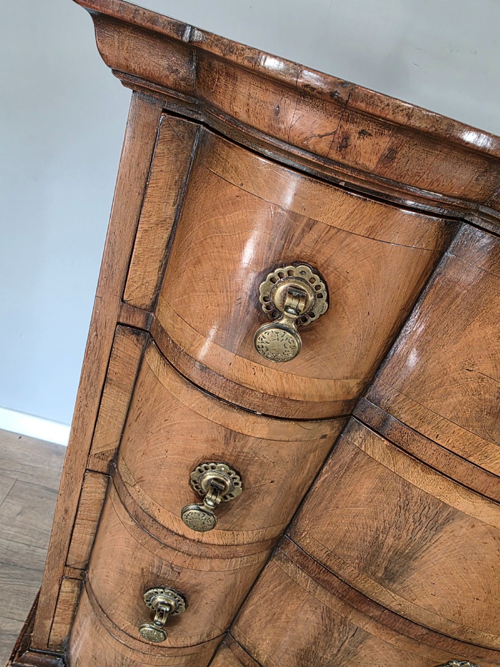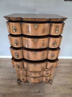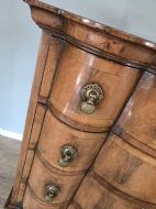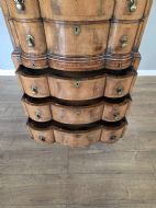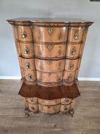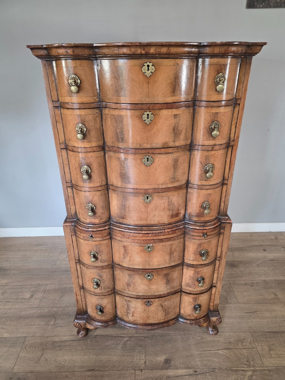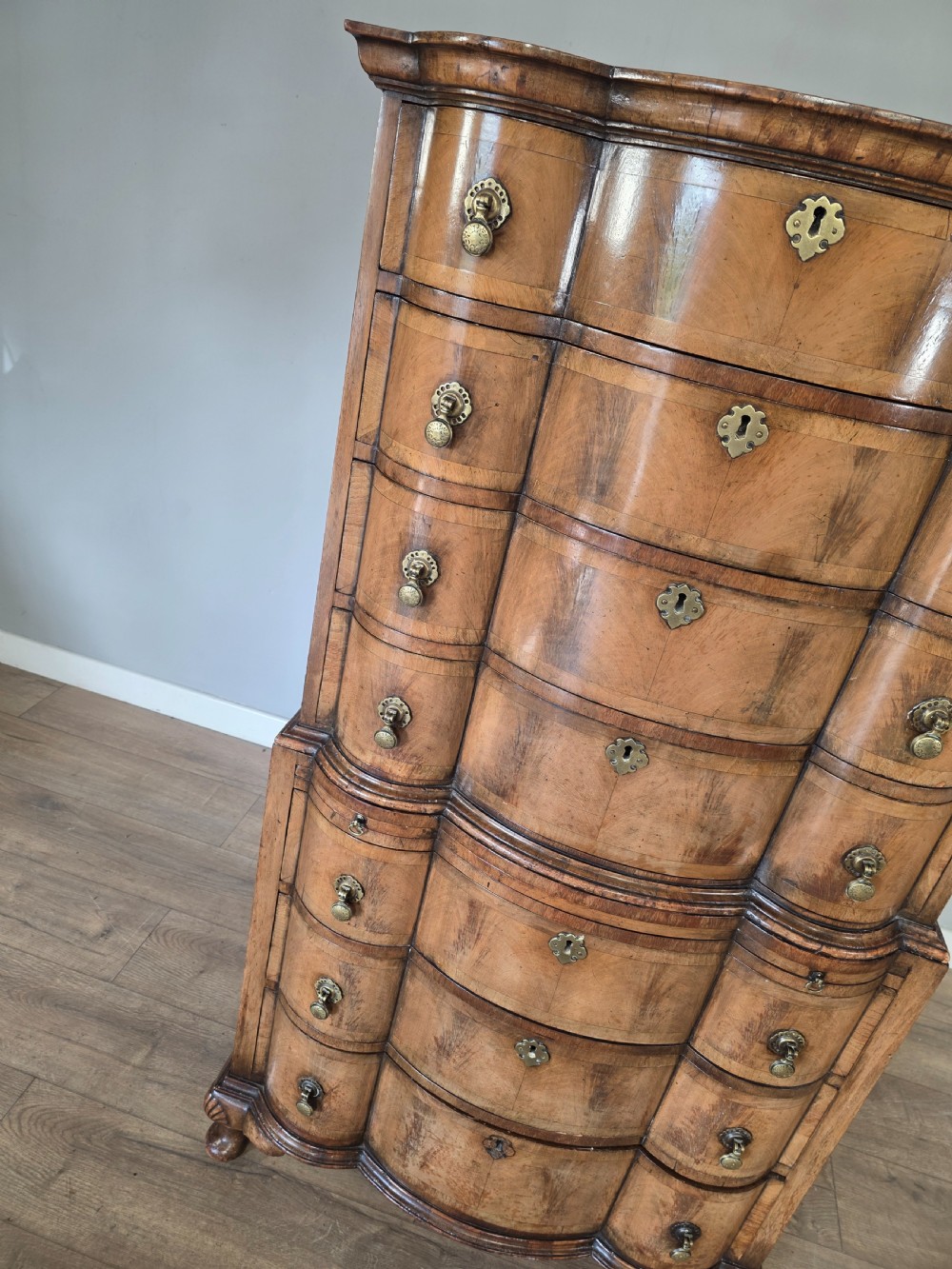 A classic and timeless piece of furniture perfect for adding a touch of elegance to any room. There is plenty of storage space as this chest comes with 7 drawers. The rich walnut finish and intricate detailing gives it a luxurious feel, making it a standout piece in any antique collection. The chest also comes with a brushing slide and splits into 2 sections for easy handling and transportation. There is one brass eschuion missing to the bottom drawer. Please see photos. Overall good condition and has faded to an excellent colour.