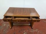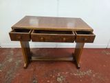 A stunning piece of antique furniture that exudes sophistication and style. The desk/sidetable is not only functional but also a statement piece for any room. Ideal for those who appreciate timeless design and quality craftsmanship. The desk/sidetable is a true vintage gem from the golden age of British furniture. It has just been professionally restored.