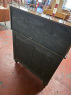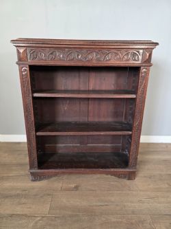 A stunning piece of antique furniture, featuring intricate craftsmanship and a classic design. This bookcase is perfect for displaying and storing a collection of books. The mirror back adds a touch of elegance, making it a charming addition to any room or home. The lovely silk curtains inside can be removed if you wished. The bookcase has beautiful detail and carvings throughout.