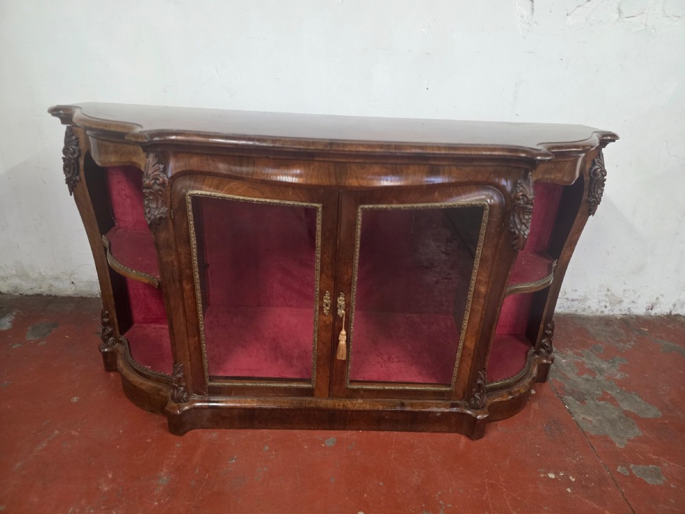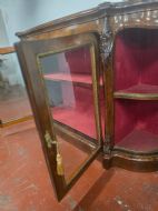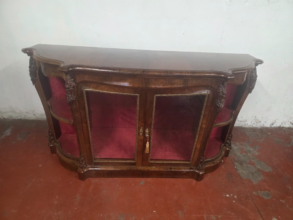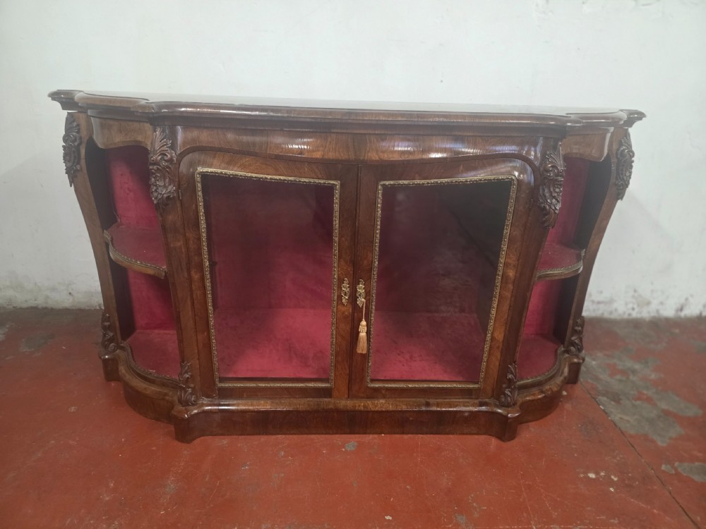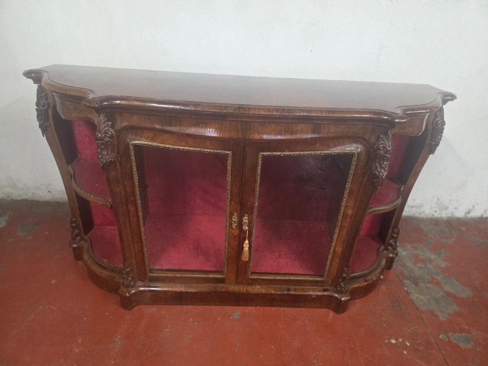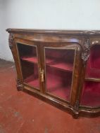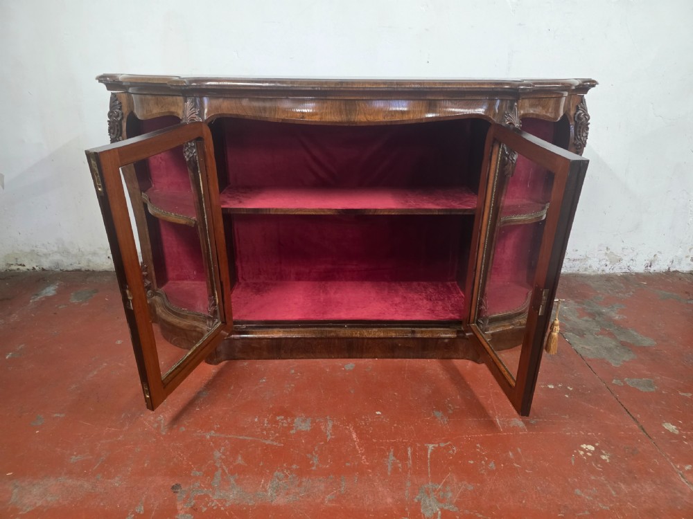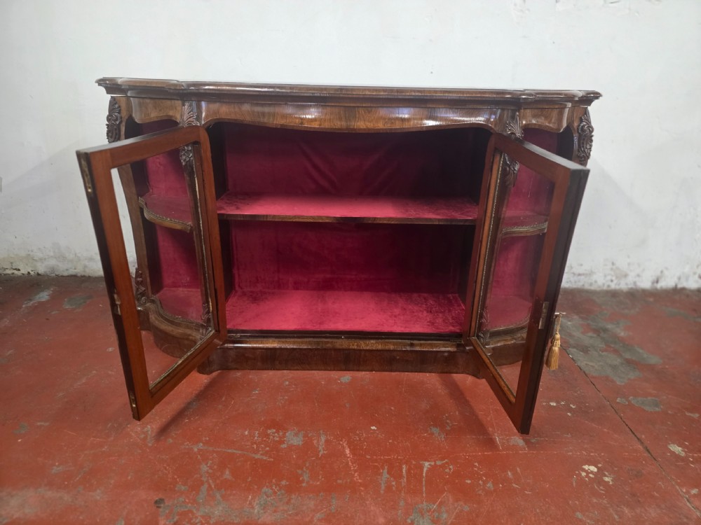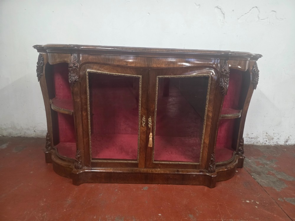 This piece of furniture exudes vintage charm with its intricate detailing. This piece serves a stylish and functional storage solution for any home. The rosewood material adds a touch of luxury, making it a timeless addition to any antique furniture collection. The credenza also comes with working lock and key.