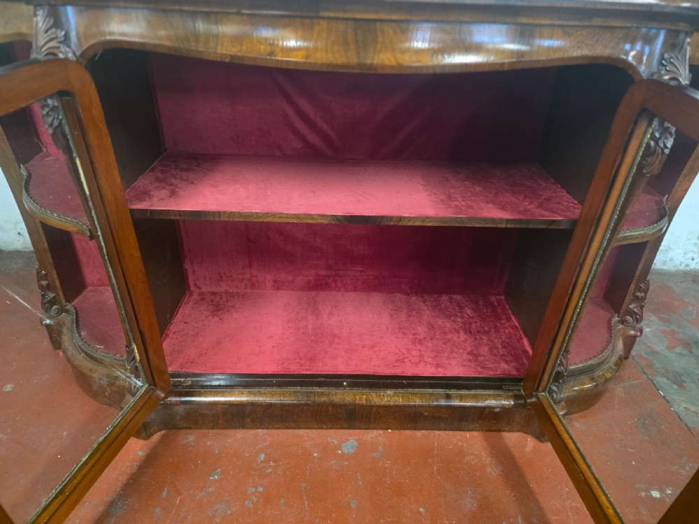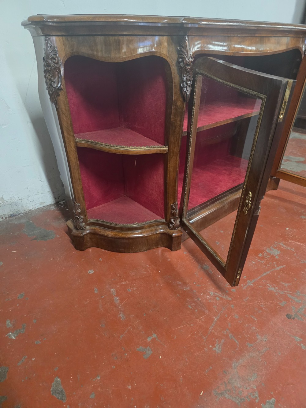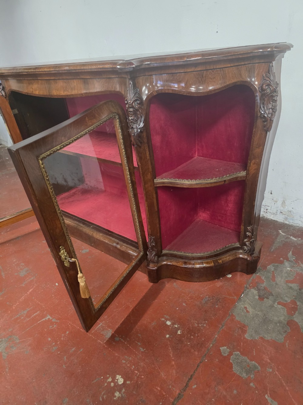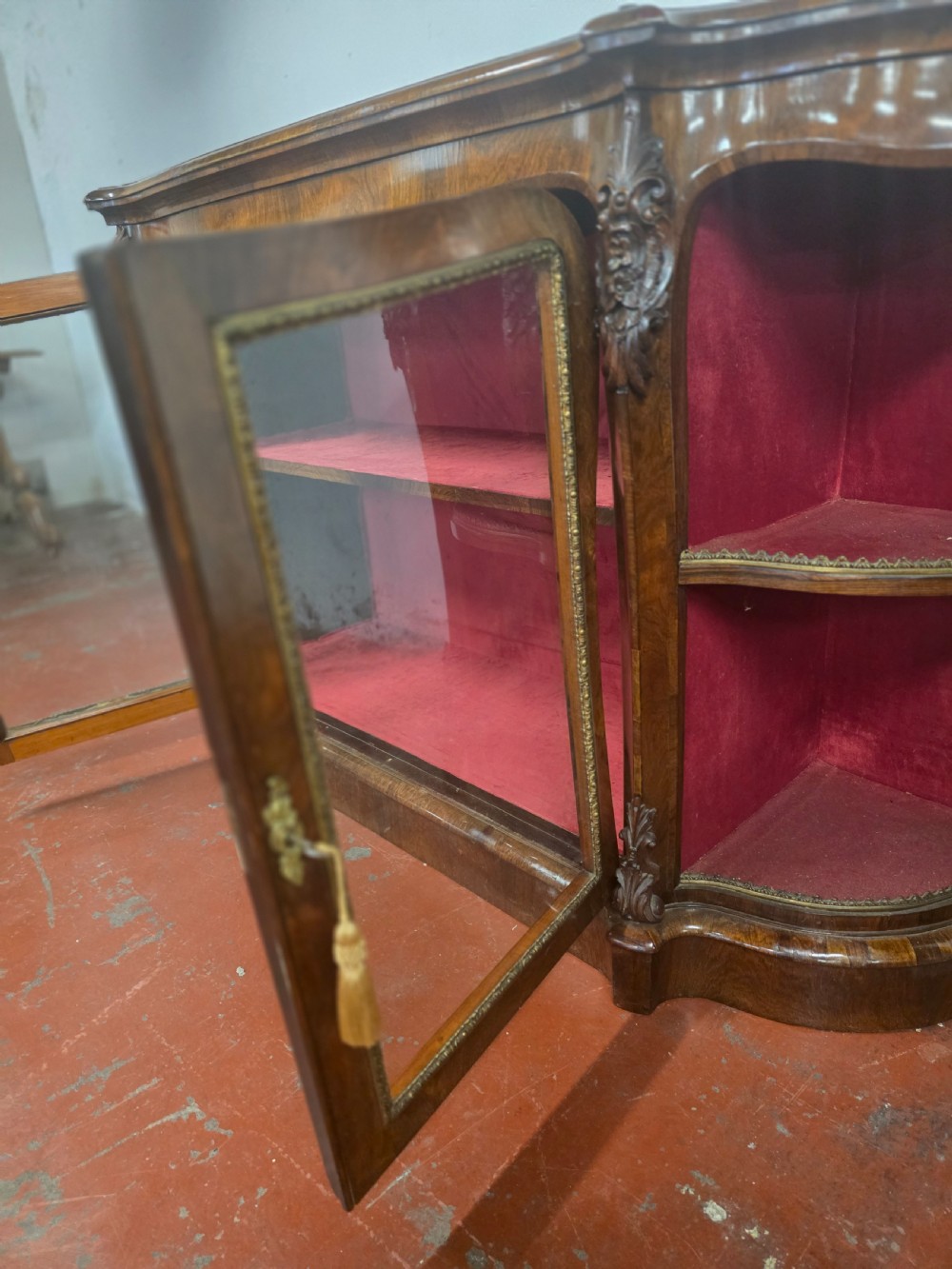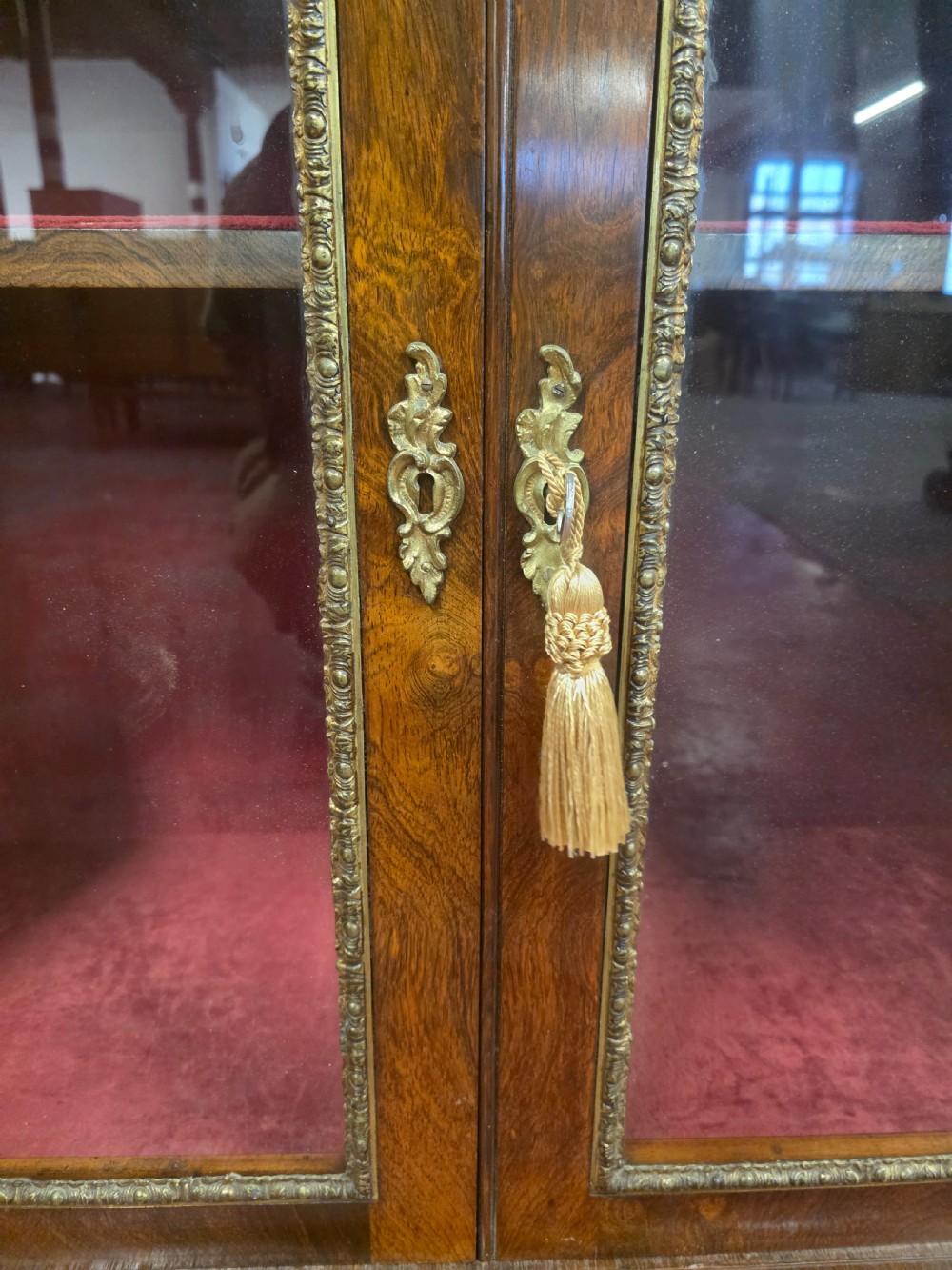 This piece of furniture exudes vintage charm with its intricate detailing. This piece serves a stylish and functional storage solution for any home. The rosewood material adds a touch of luxury, making it a timeless addition to any antique furniture collection. The credenza also comes with working lock and key.