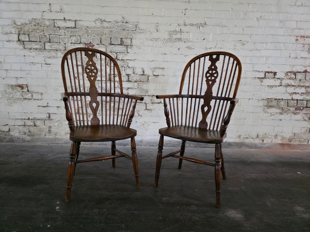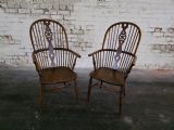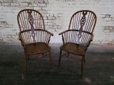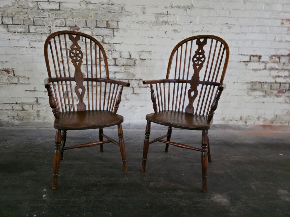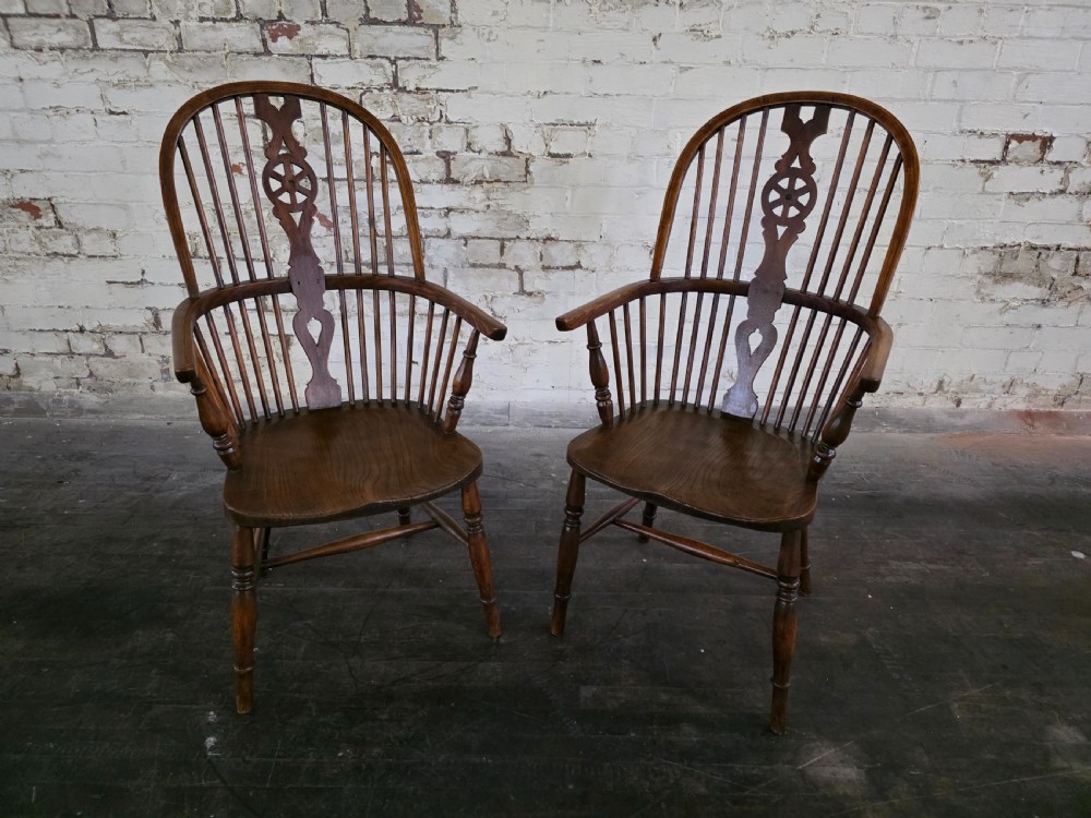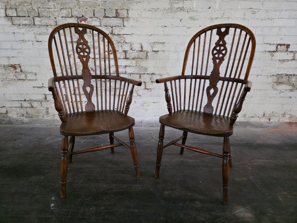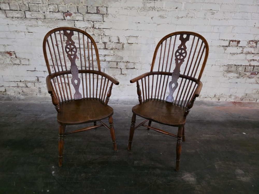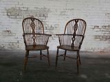 A pair of Antique Elm Ash and Beach High Back Windsor Chairs 1920s.
