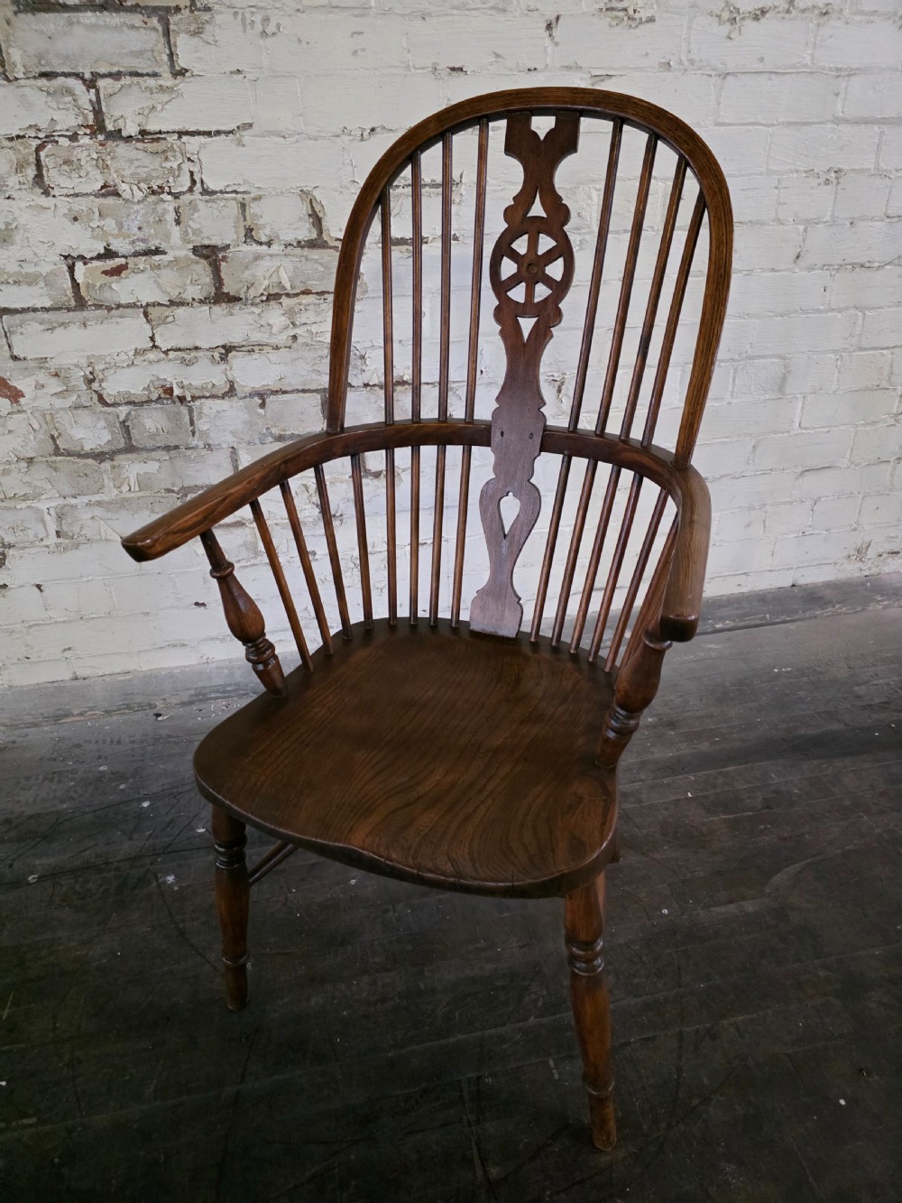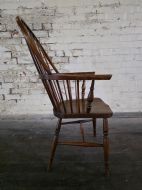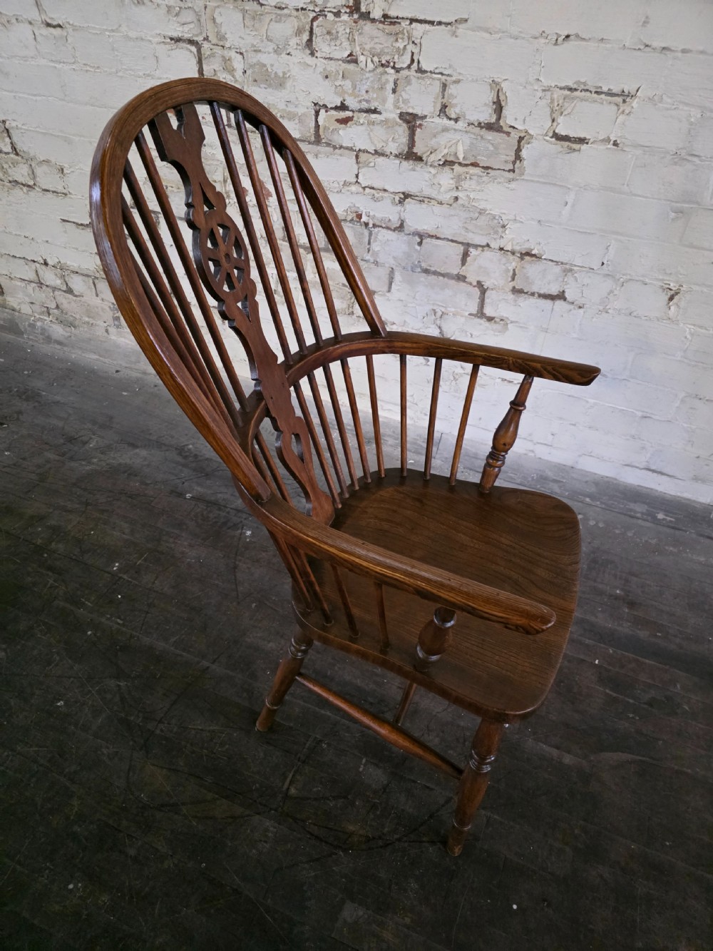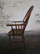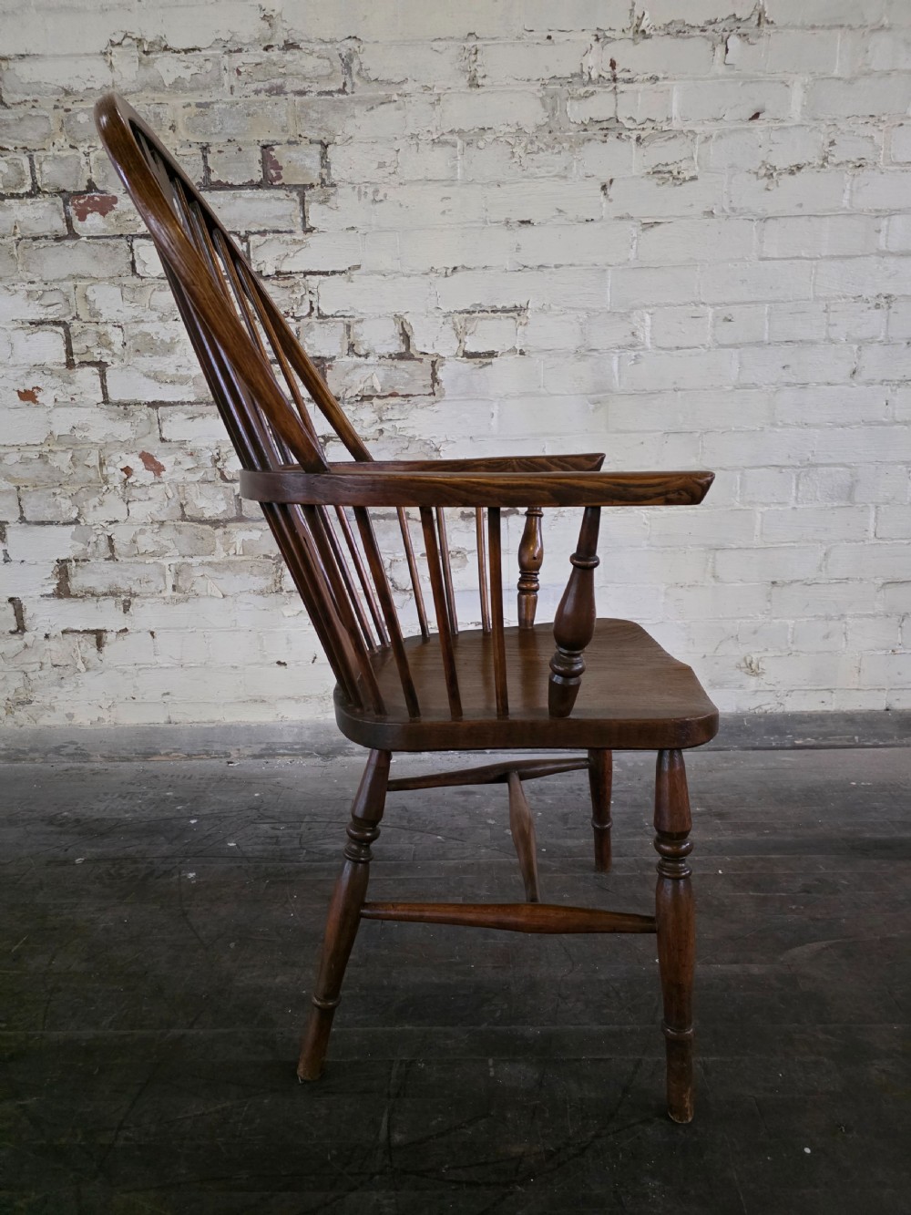 These Windsor chairs from the 1920s exude old-world charm with their intricate design and rich brown colour. These chairs provide a comfortable and elegant seating option for any living space. The timeless appeal of these antique pieces make them a valuable addition to any collection of vintage furniture, adding a touch of history and sophistication to any room. Another pair of these are available.