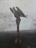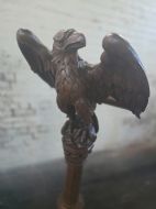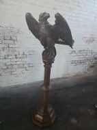This piece of furniture exudes historical charm and intricate craftsmanship. It is a striking piece of furniture that would make a unique addition to any antique collection. The Eagle design and carved detailing adds a touch of elegance and sophistication to this piece making it a timeless and versatile item for display in a home or office setting.