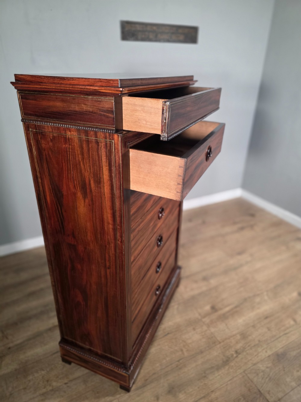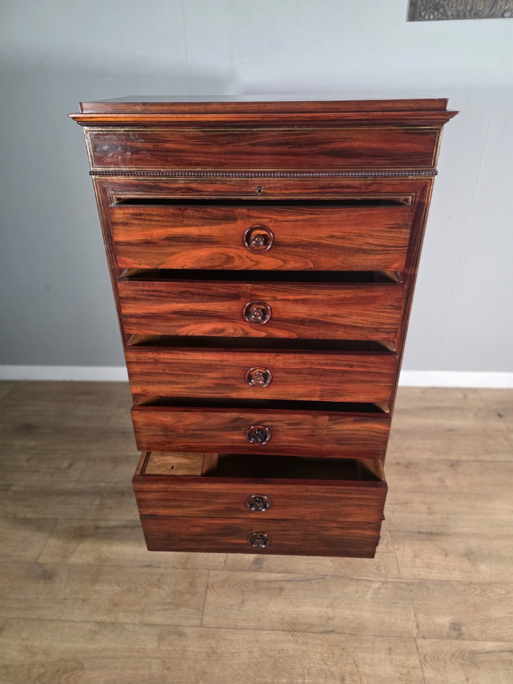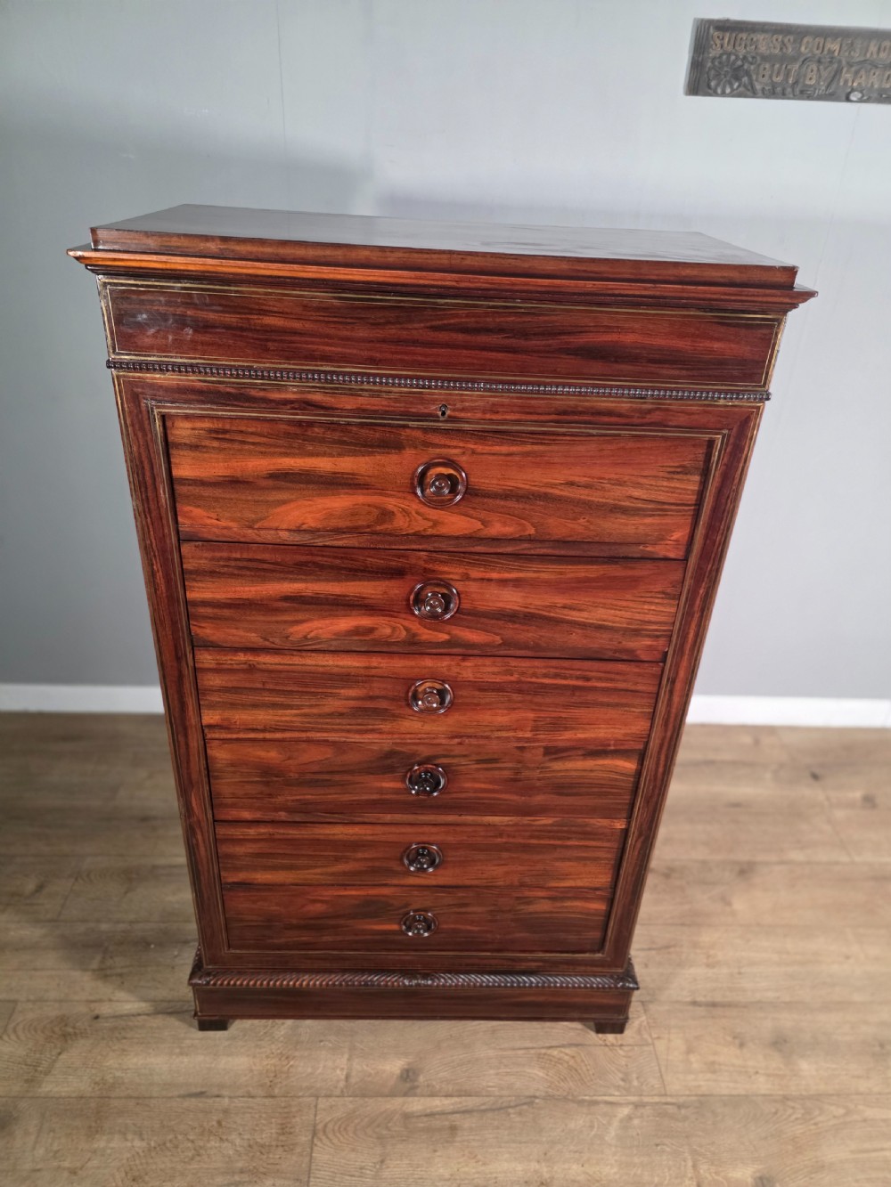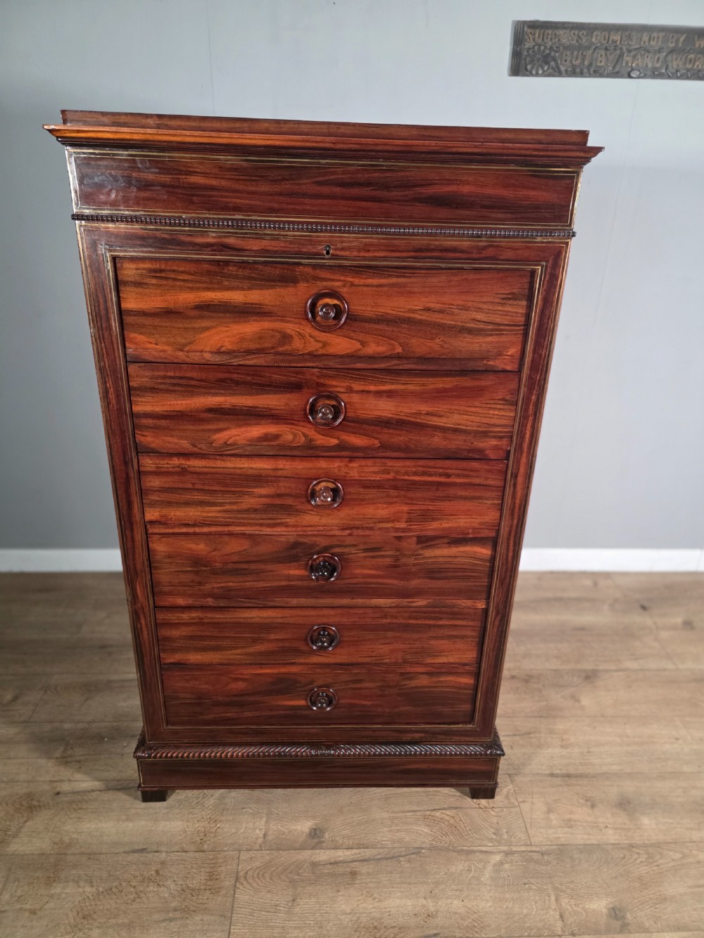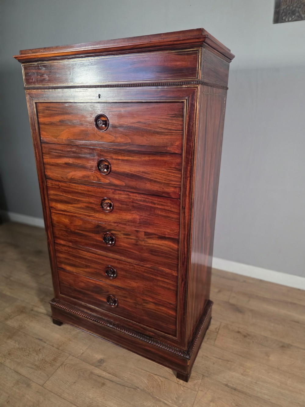 antique french rosewood brass inlaid 6 drawer chest 1880s
