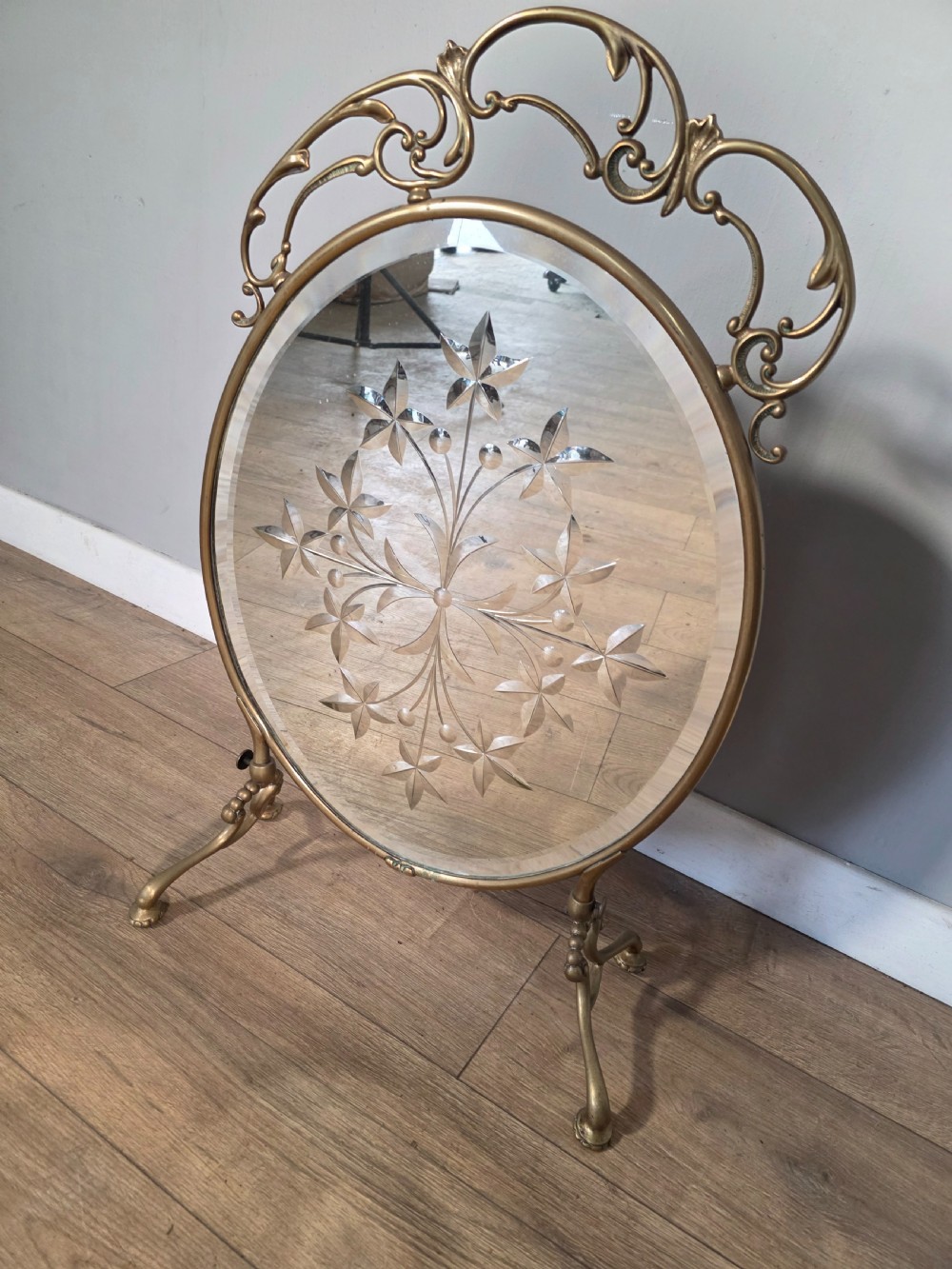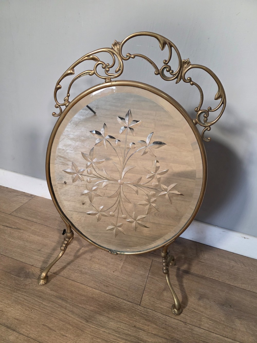 Antique Art Nouveau Style Cut Glass Fire Screen 1900s