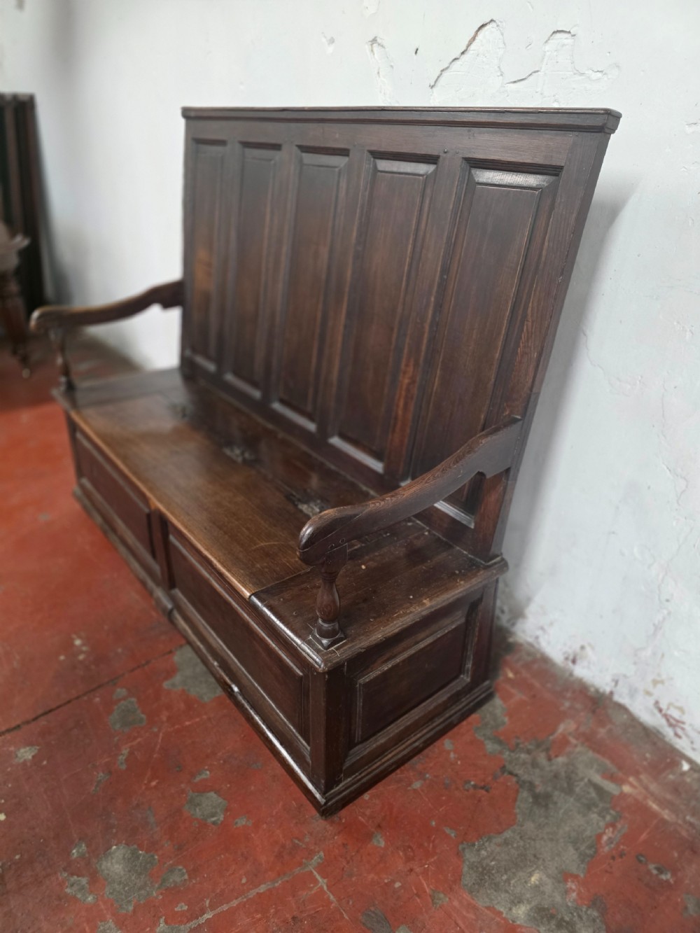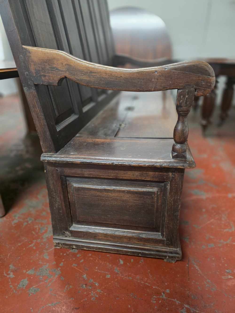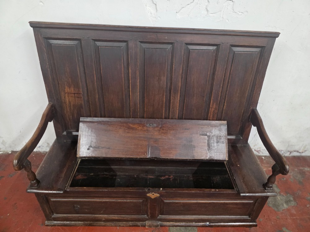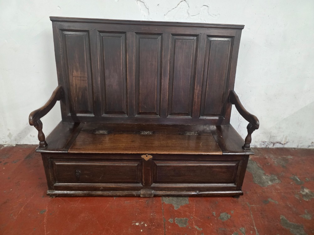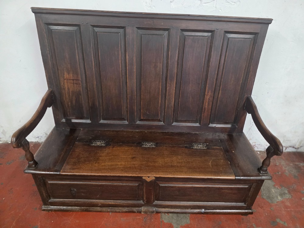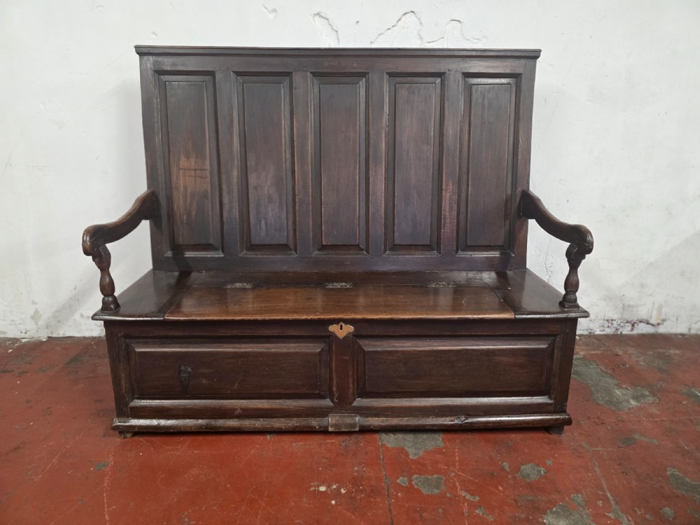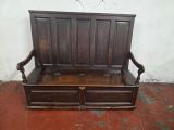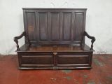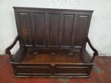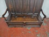 A stunning piece of furniture from the 1880s. This settle bench is not only stylish but comfortable and durable. Perfect for those wanting to add a touch of elegance to any room. This antique piece exudes historical charm and timeless sophistication.