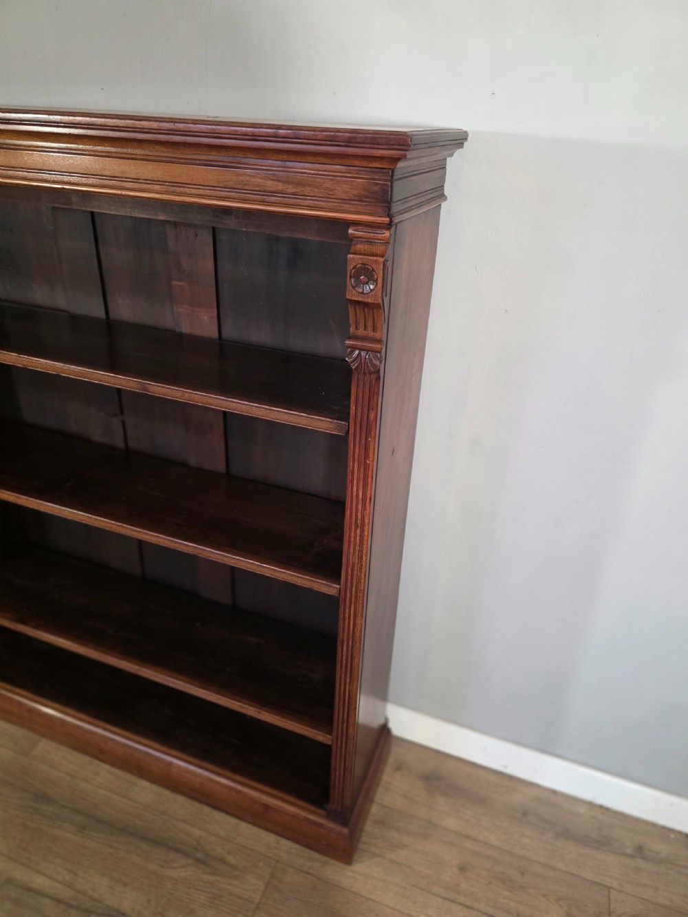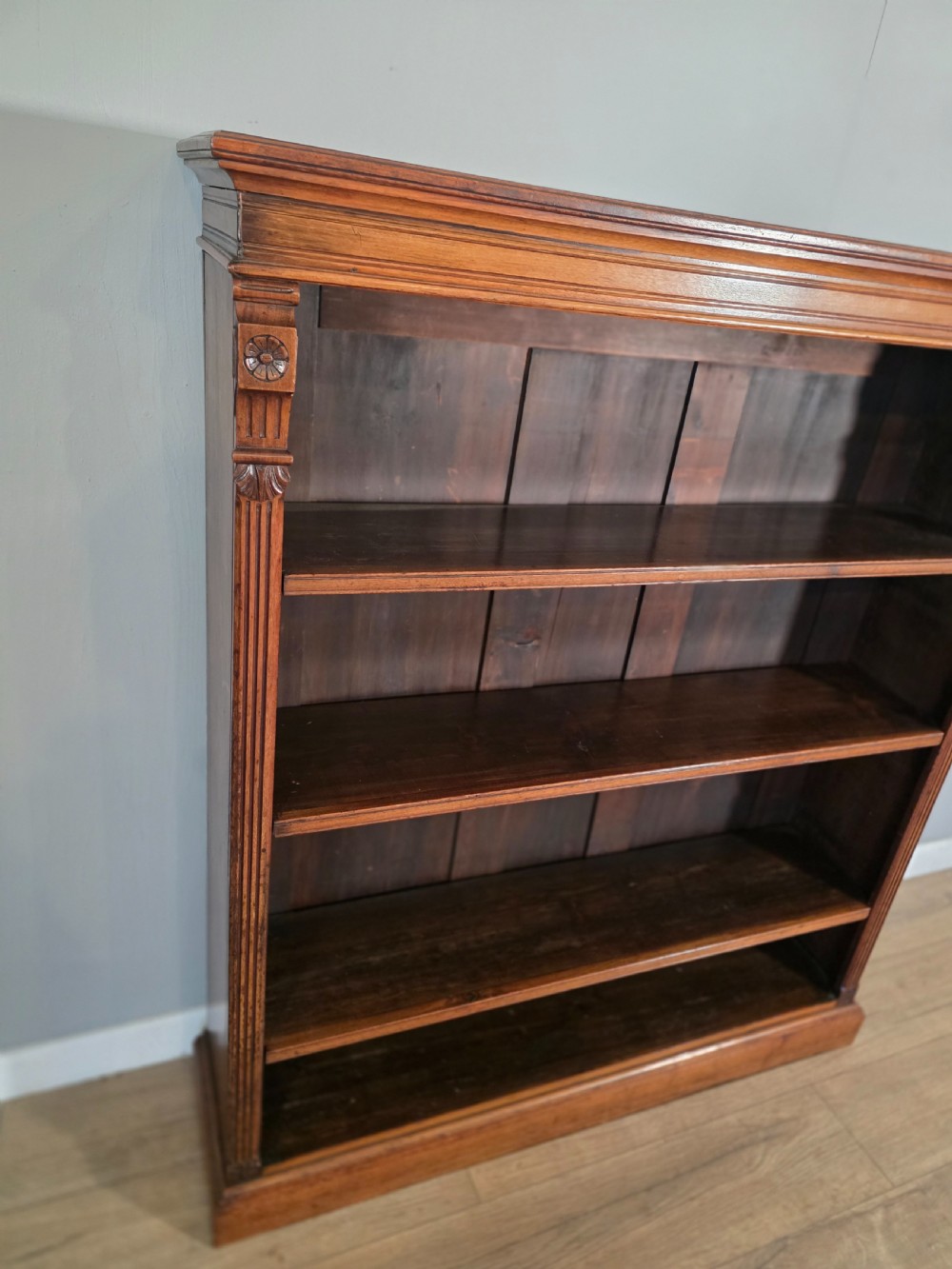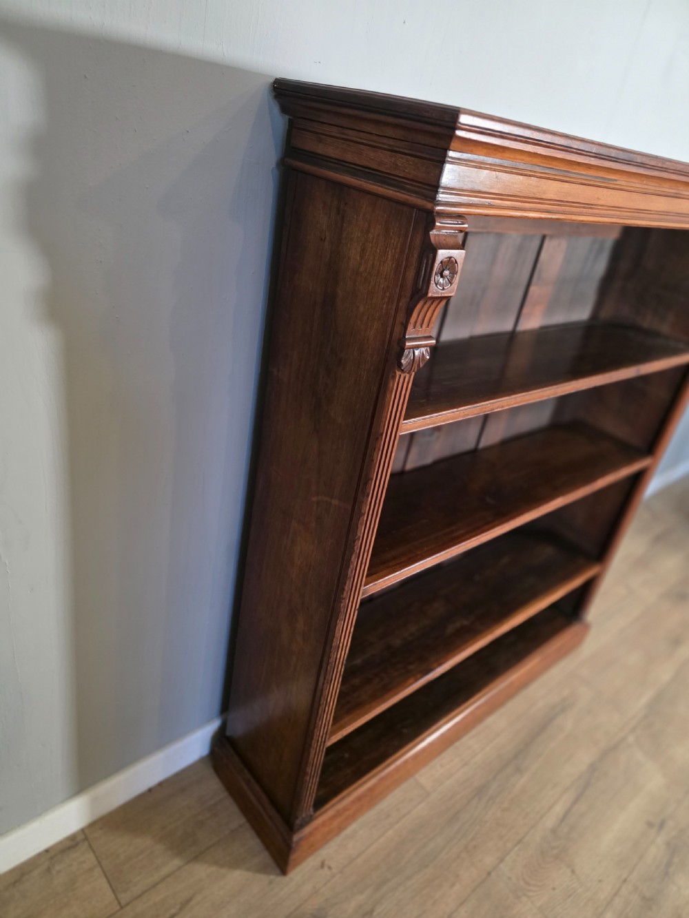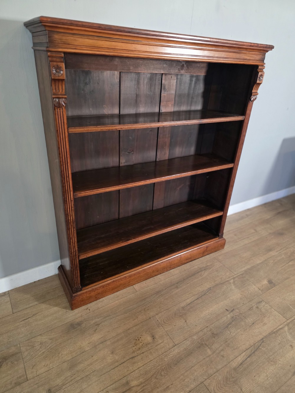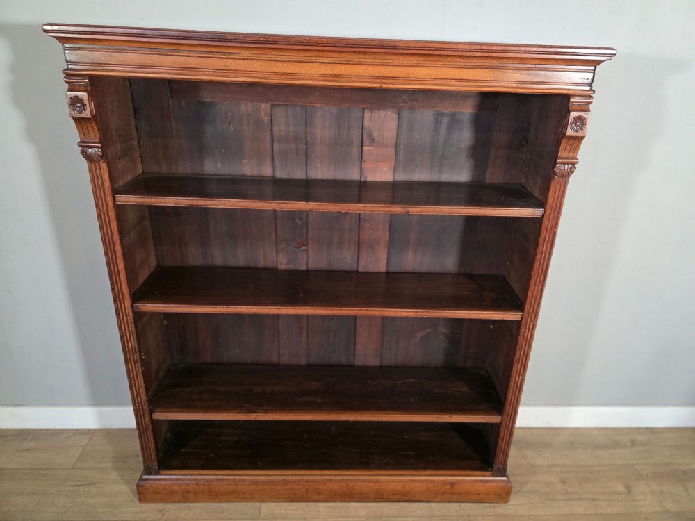 Antique Victorian Walnut Adjustable Openshelf Bookcase 1890s.