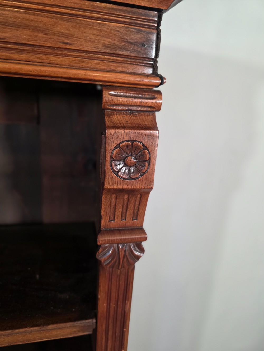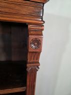 A stunning piece of antique furniture. This bookcase offers ample storage space for books and decorative items. The adjustable shelves allow for customizable storage configurations, while the walnut construction adds a touch of elegance and durability. A timeless addition to any home, this bookcase combines functionality and classic victorian style.