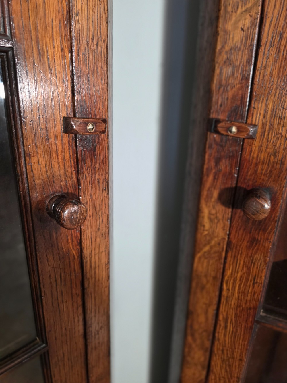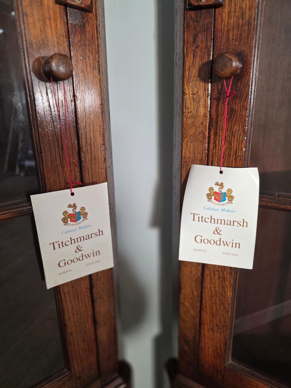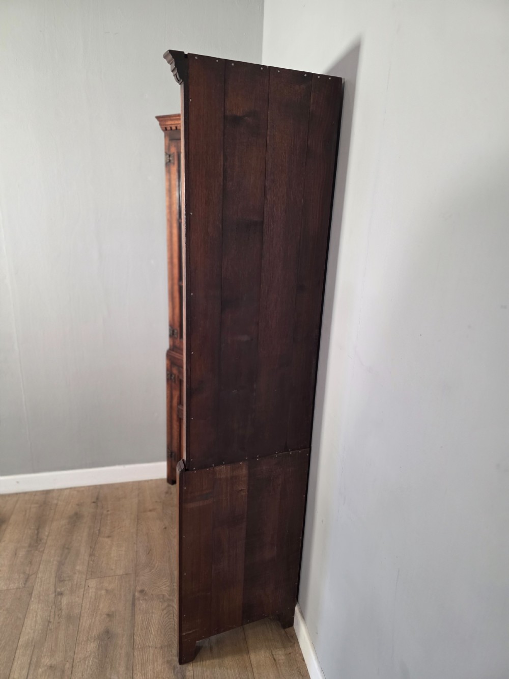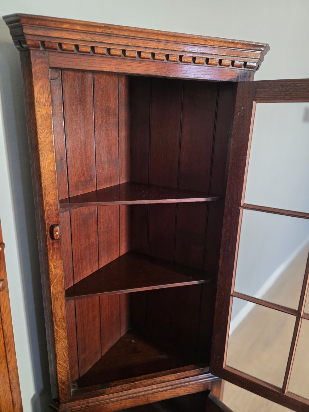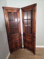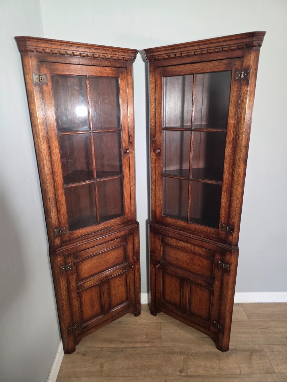 antique 1980s matching pair of solid oak titchmarch goodwin corner cupboards